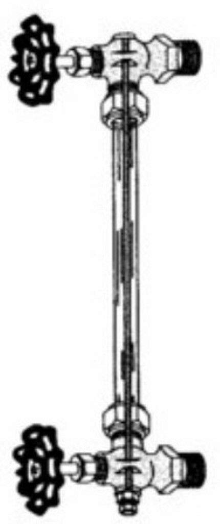 INCLUDES: 2- Brass Valves with Needle Drain on Lower Valve, 2- Brass Nuts, 2- Brass Friction Rings, 2- Gauge Glass Gaskets, 2- Support Rods.