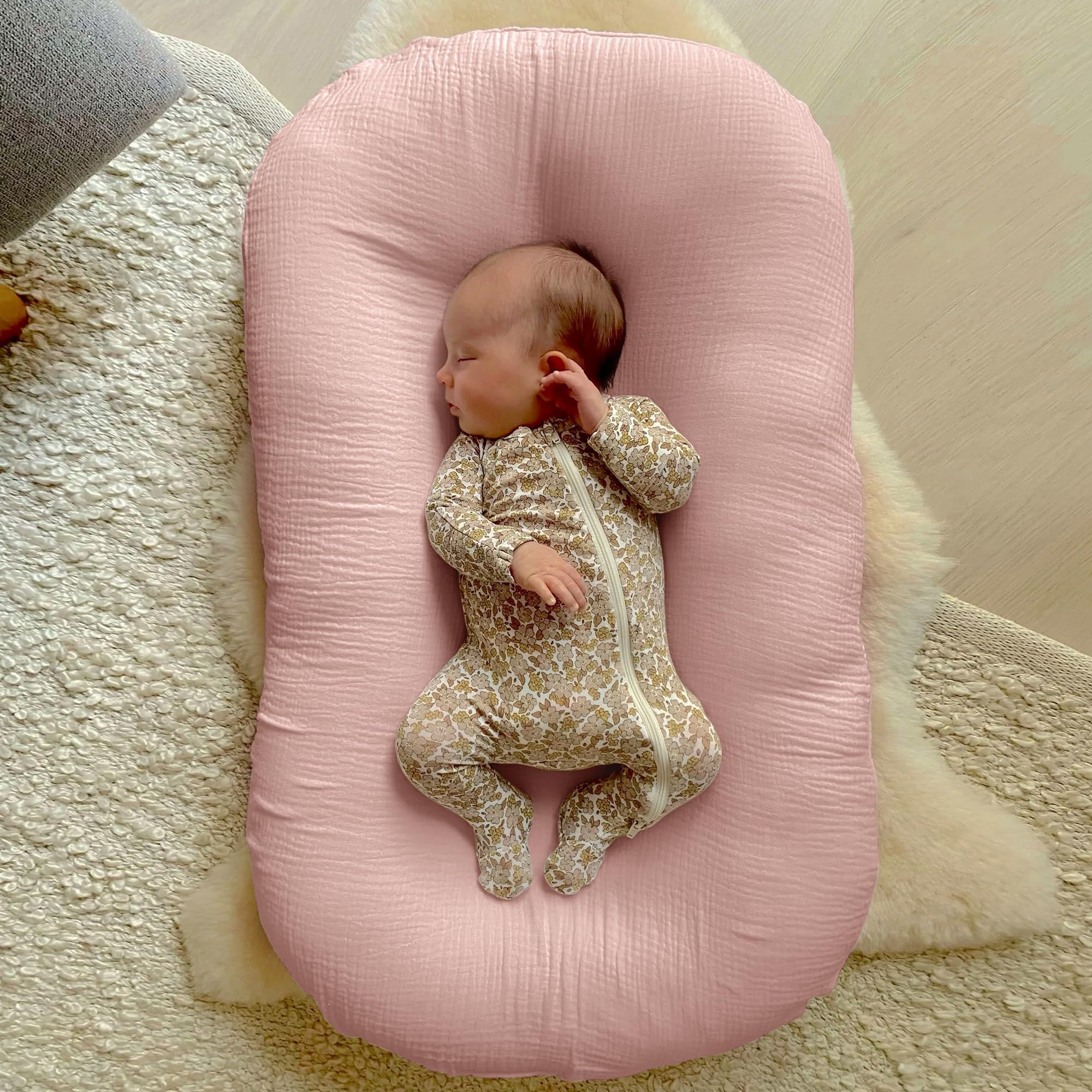Soft and Breathable: Our baby lounger cover is made of 100% muslin cotton. Experience the soft and comfortable touch of our fabric, perfect for your baby's delicate skin. The lightweight and breathable material will ensure your little one stays cool and cozy