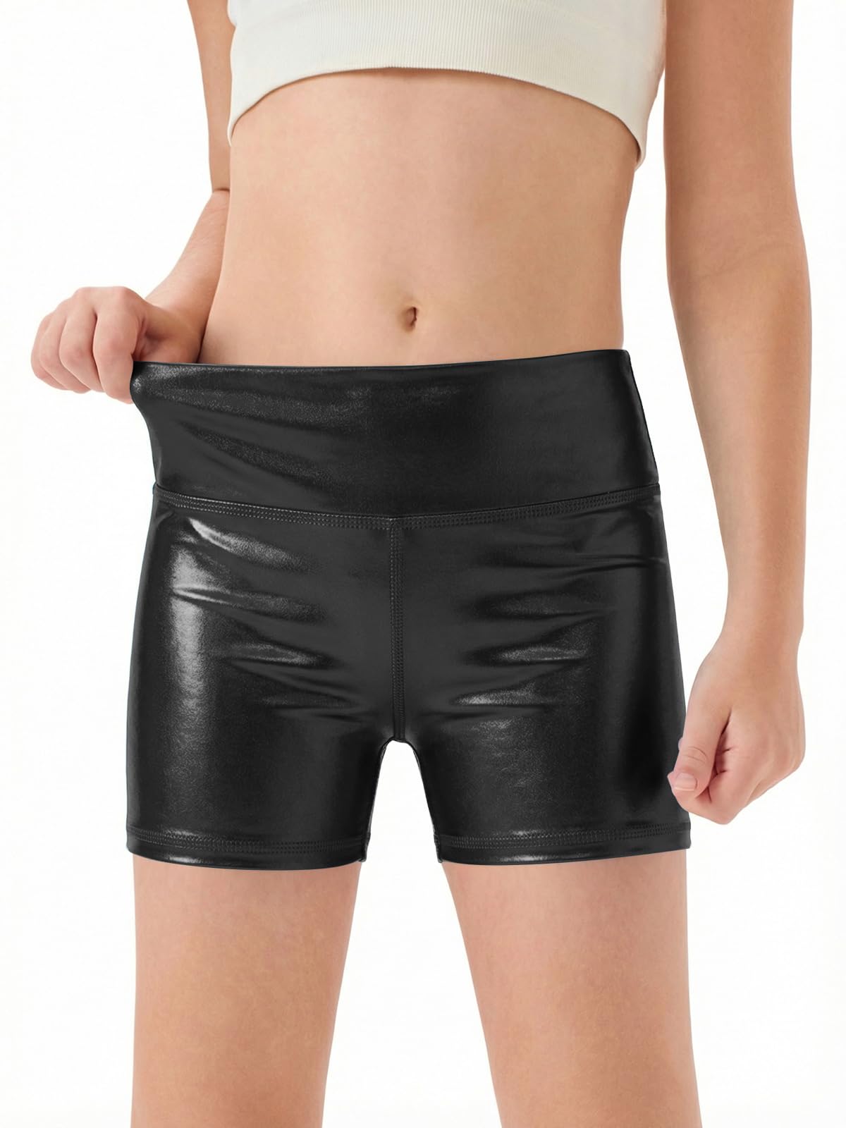 Material: Girls metallic athletic shorts are made from lightweight, comfortable and spandex materials. Seamless design to minimize friction and irritation, ensuring a smooth and comfortable fit to the skin. Soft and stretchy, they wick moisture and are breathable to keep you dry and comfortable. You can enjoy the workout in relax