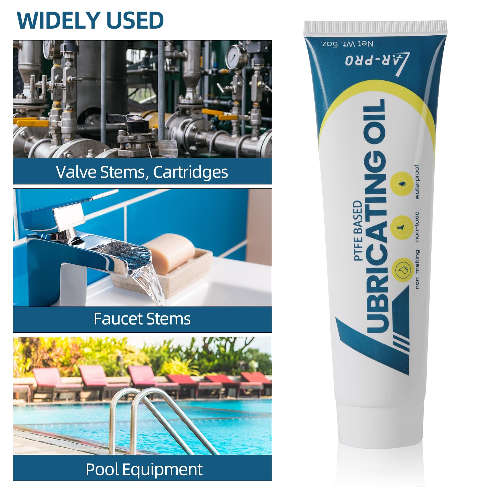 MULTI-PURPOSE SEALANT LUBRICANT: Silicone sealant serves as a waterproof lubricant suitable for various applications, including faucets, valve stems, cartridges, scuba gear, bearings, and gaskets. It is an ideal choice for plumbers' faucets grease and valve grease.