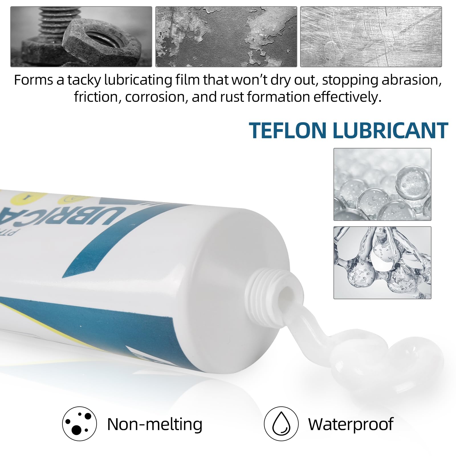 TEFLON LUBRICANT: As a lubricant base, PTFE is non-melting and waterproof. It forms a tacky lubricating film that won’t dry out, stopping abrasion, friction, corrosion, and rust formation effectively.