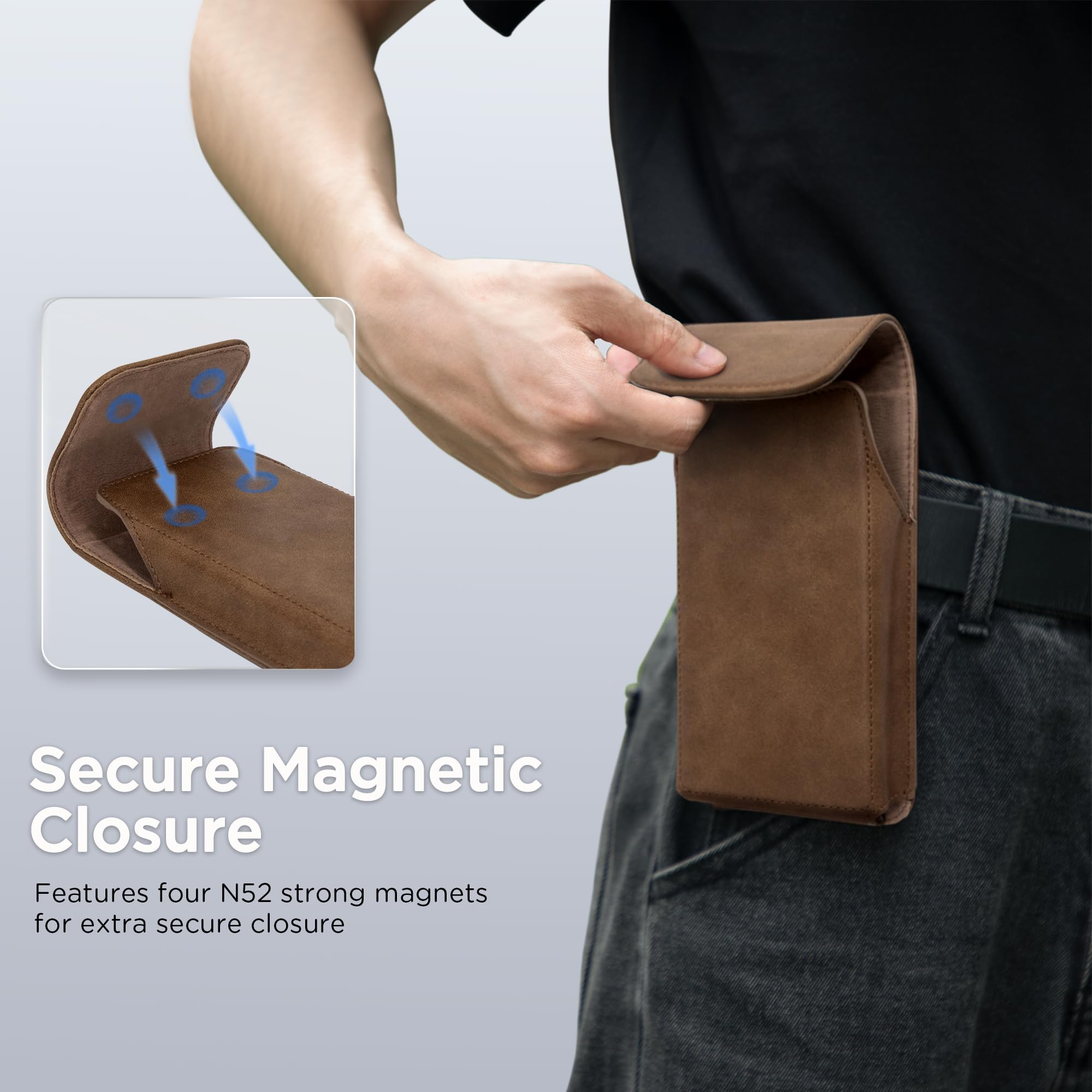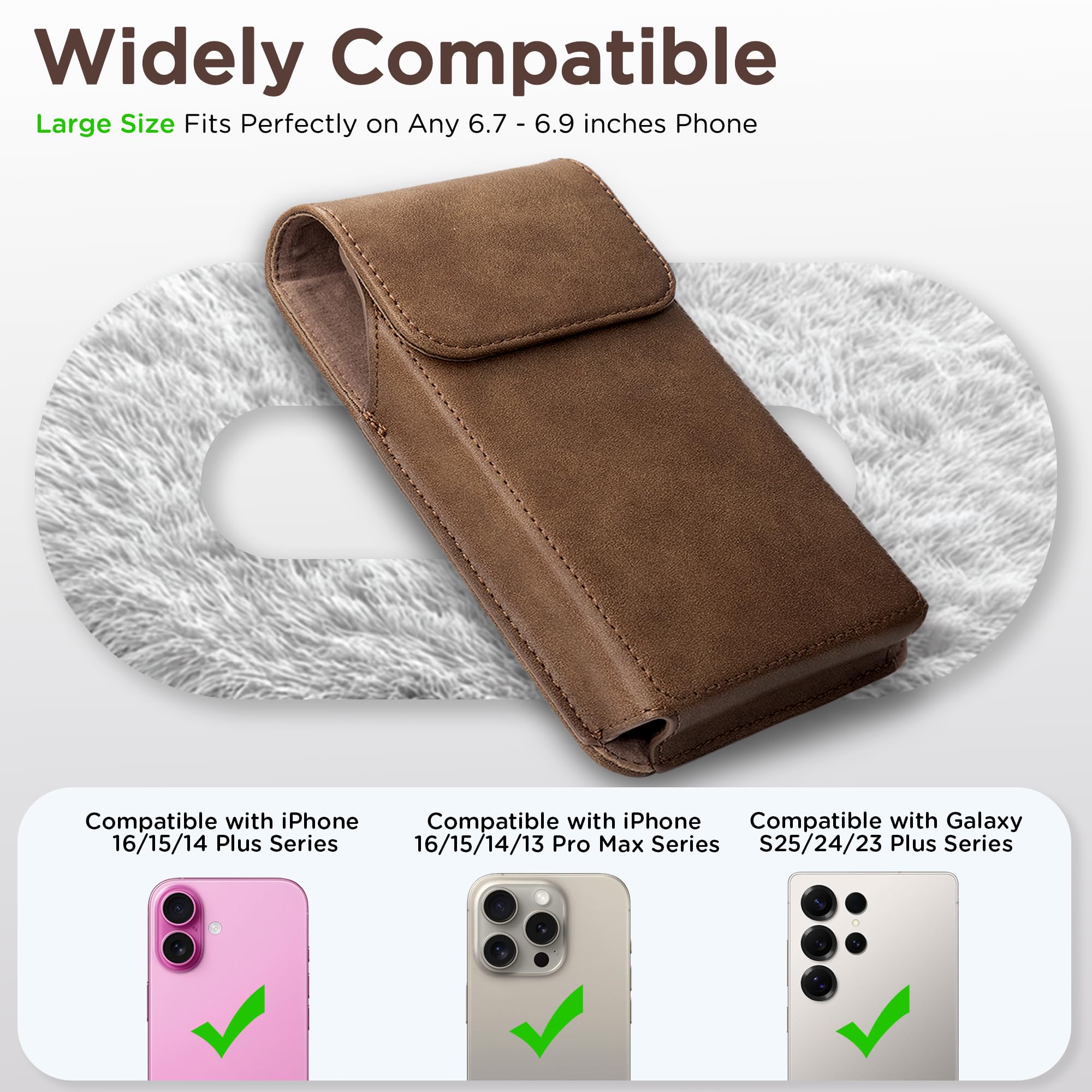 [Wide Compatibility] This leather phone pouch with belt clip is widely compatible with iPhone 16 Pro Max, iPhone 15 Pro Max, iPhone 16 Plus, iPhone 15 Plus, iPhone 14 Pro Max, iPhone 14 Plus, iPhone 13 Pro Max,iPhone 12 Pro Max, iPhone 11 Pro Max, iPhone XS Max, Samsung Galaxy S24+, Galaxy Fold 5/4/3, Galaxy S23+ and other folded phones