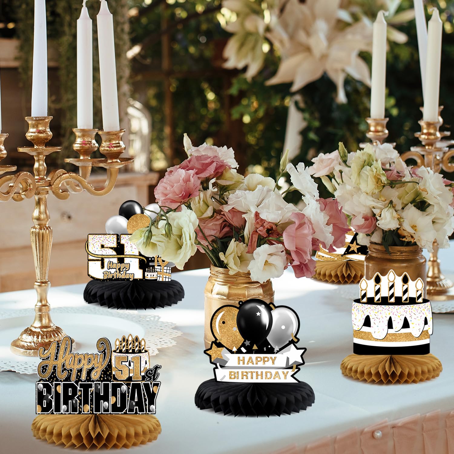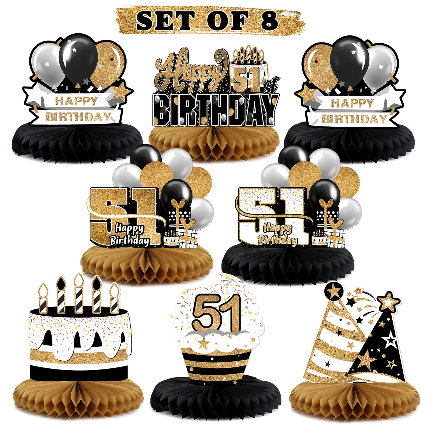 [WHAT YOU GET] Comes with 8pcs "51st Birthday" Gold cake star balloon table honeycomb ,made of thick paper and great details sign.Take pictures will very pretty !