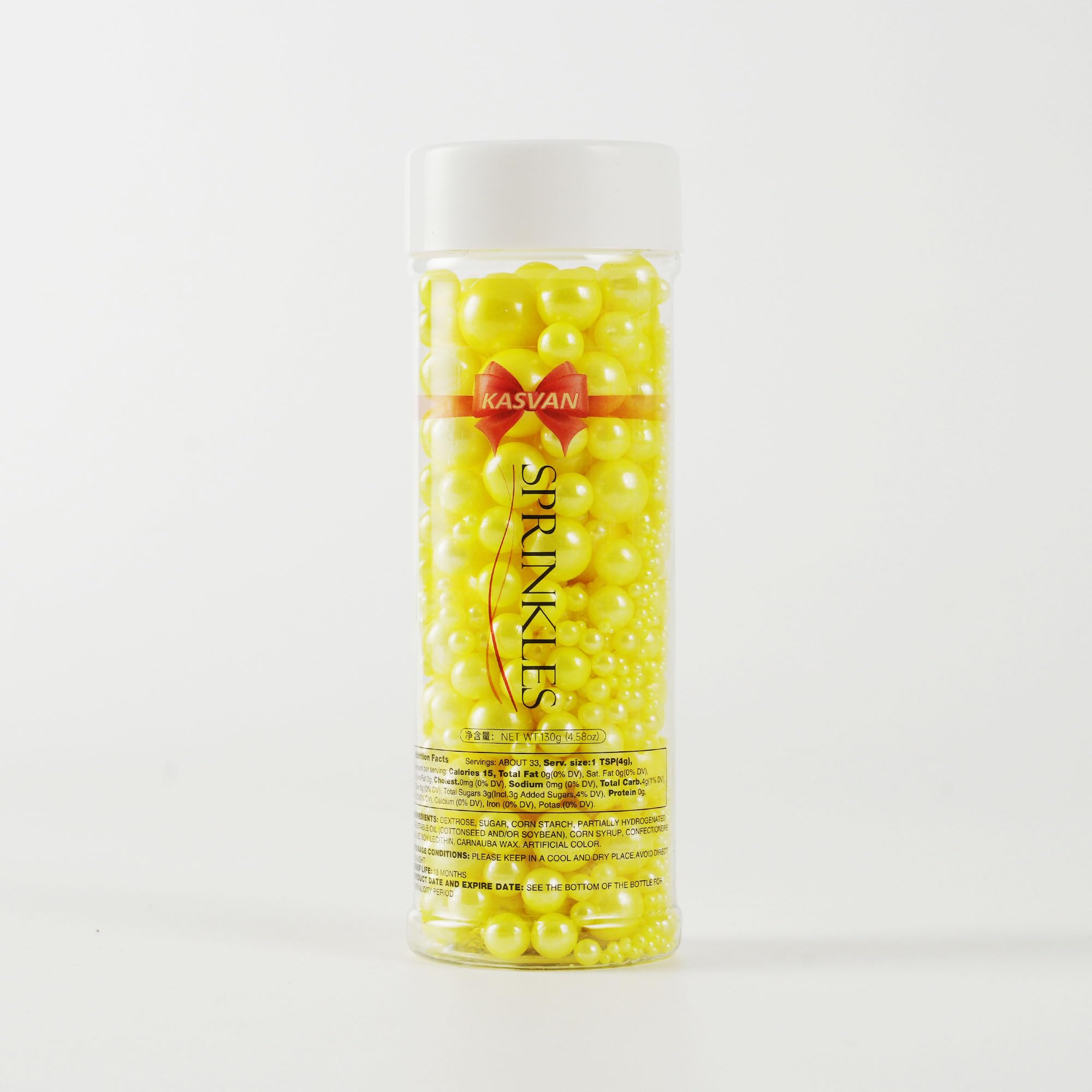✨PACKAGE INCLUDES: 1 edible bottle of Yellow pearl sugar, 130g/4.58 oz. The main ingredients of sugar pearls are: sugar, beetroot, spirulina, carnauba wax, gluten free, nut free.