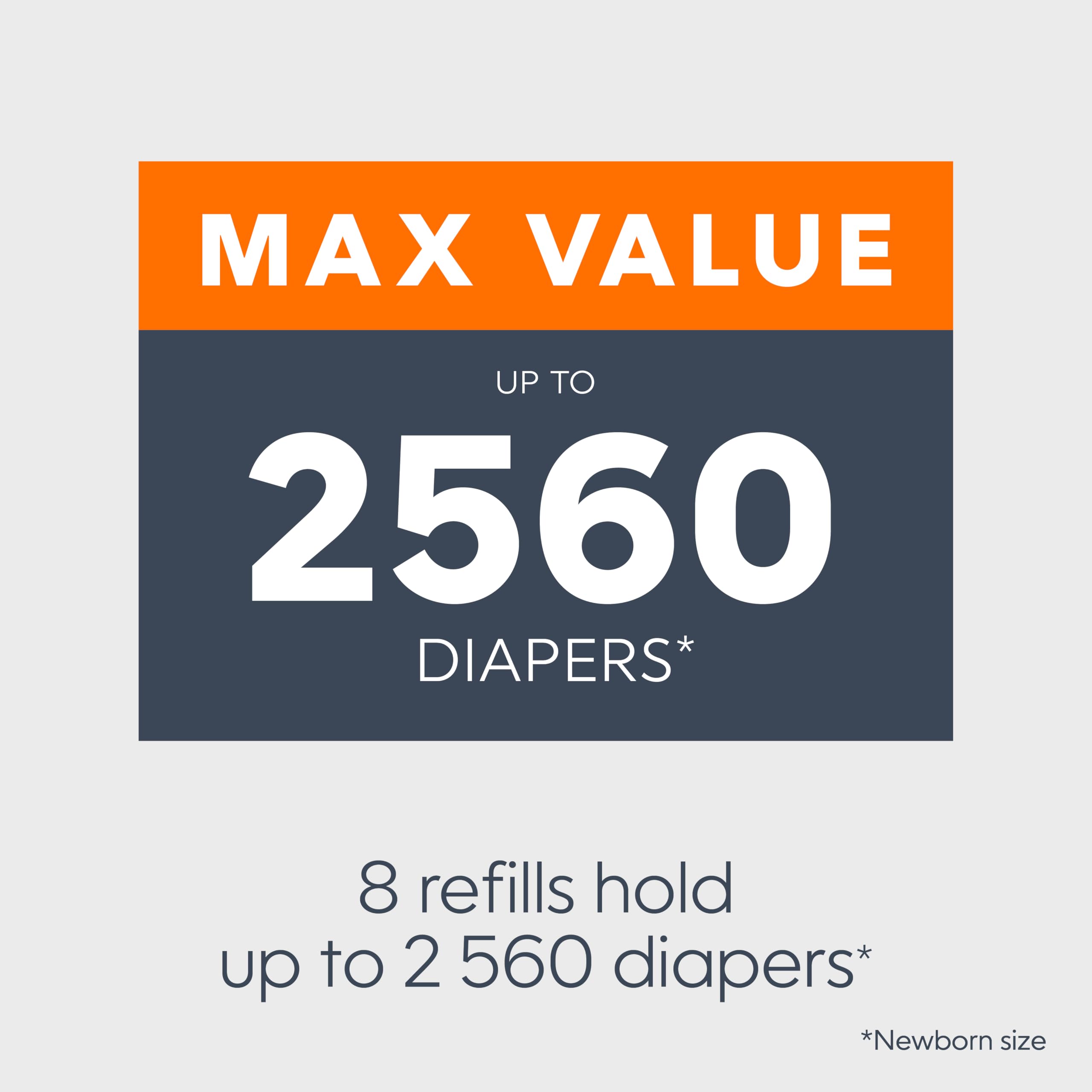 HOLDS A POOP TON: Each Diaper Genie Essentials Round Continuous Refill can hold up to 320 newborn-sized diapers, meaning 2560 newborn diapers in total for the bulk 8-pack offer which is fewer trips to the trash!