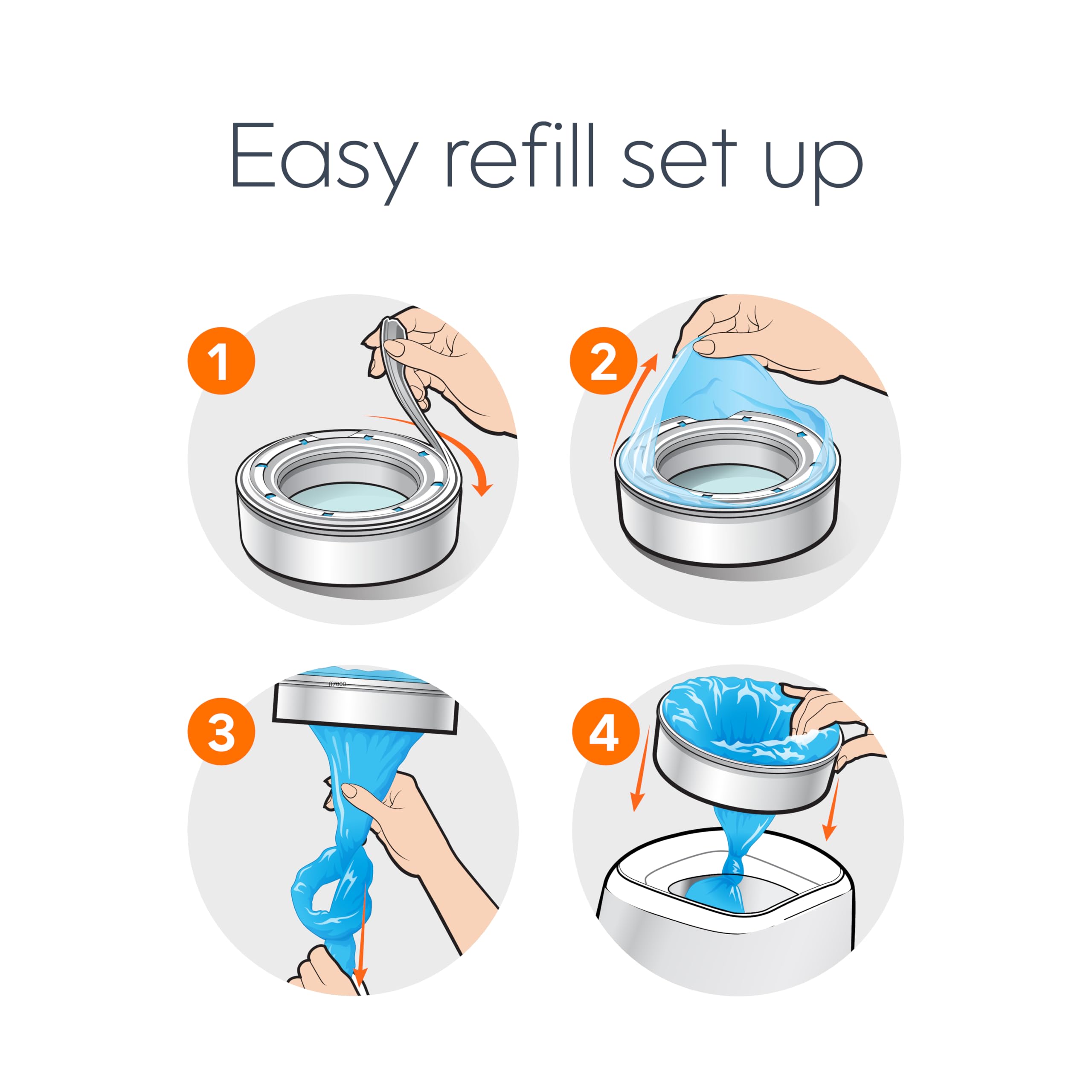 The Diaper Genie Essentials Round Refill 8-pk can hold up to 2560 newborn-sized diapers and is made from durable multi-layer film that features odor-locking barrier technology preventing odors from escaping and keeping your nursery fresh. Compatible with Diaper Genie Complete Pail and Expressions Pail.