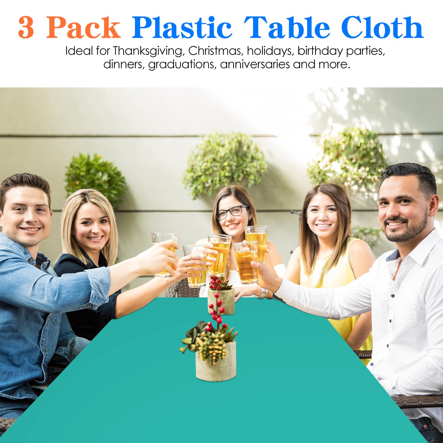 Versatile: Ideal for Christmas, Thanksgiving, holidays, birthday parties, dinners, graduations, anniversaries and more. Our tablecloths can be used in a variety of different scenarios.
