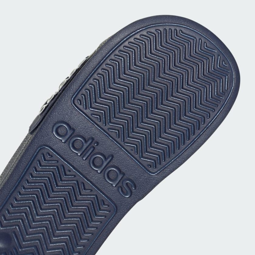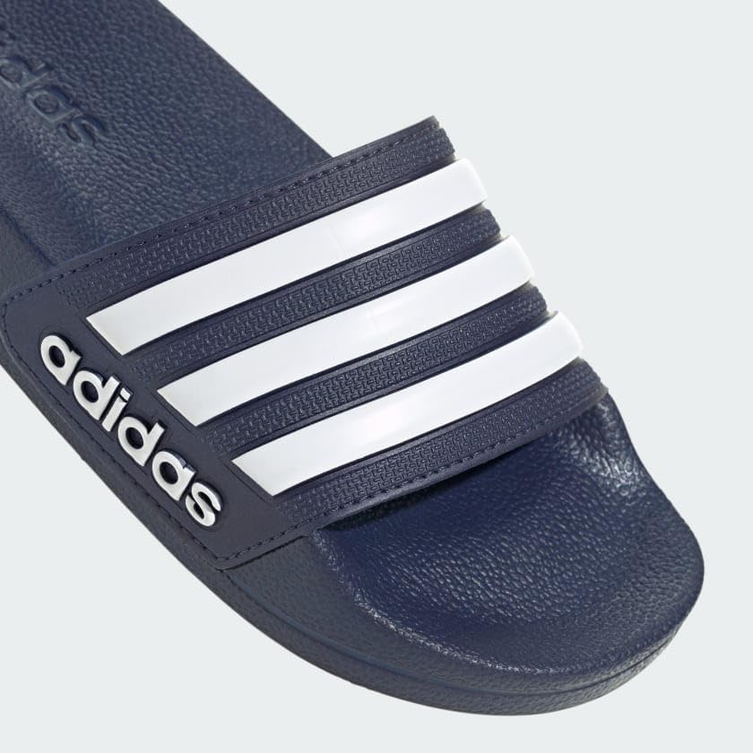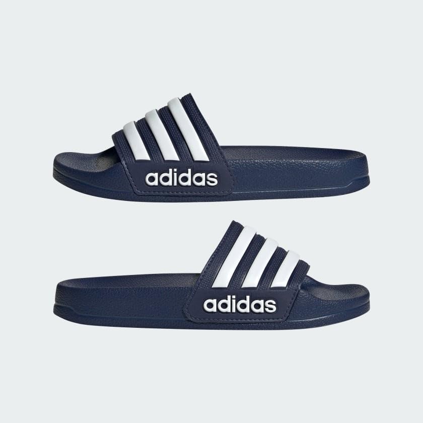 Description After their swim, treat kids' feet to comfort in these slides. The quick-drying slip-ons have a contoured Cloudfoam footbed that cradles small feet. The 3-Stripes on the bandage offer a touch of adidas style.