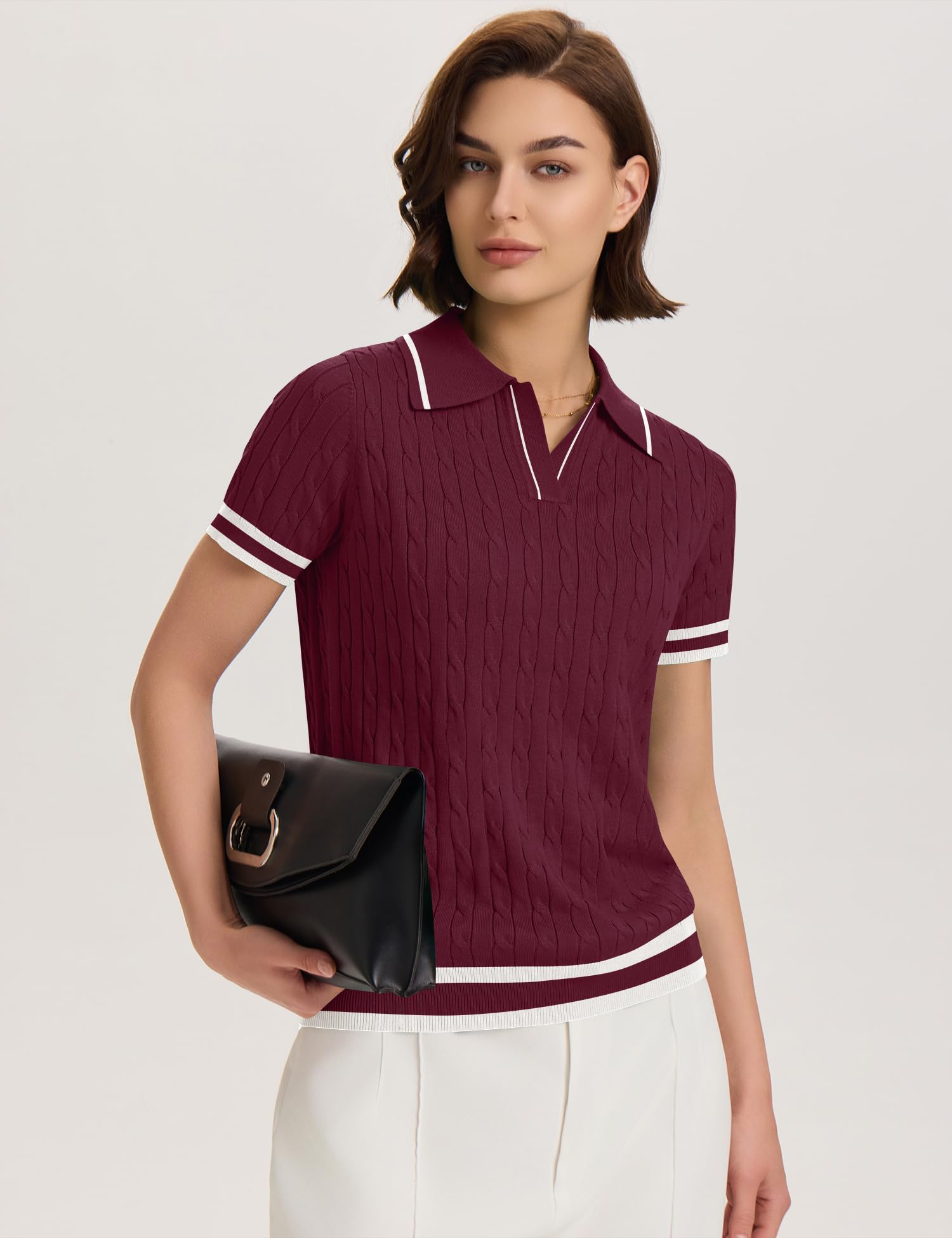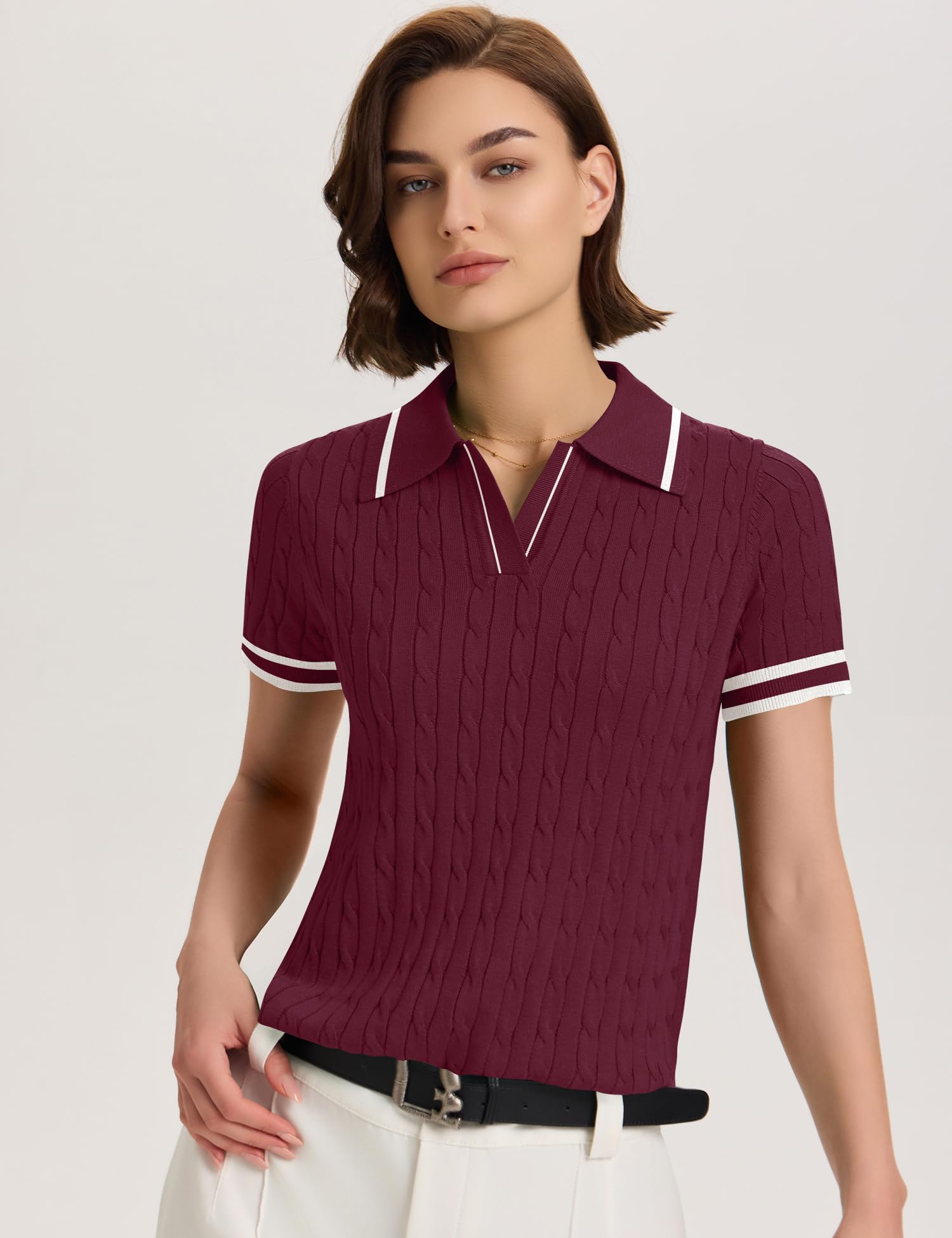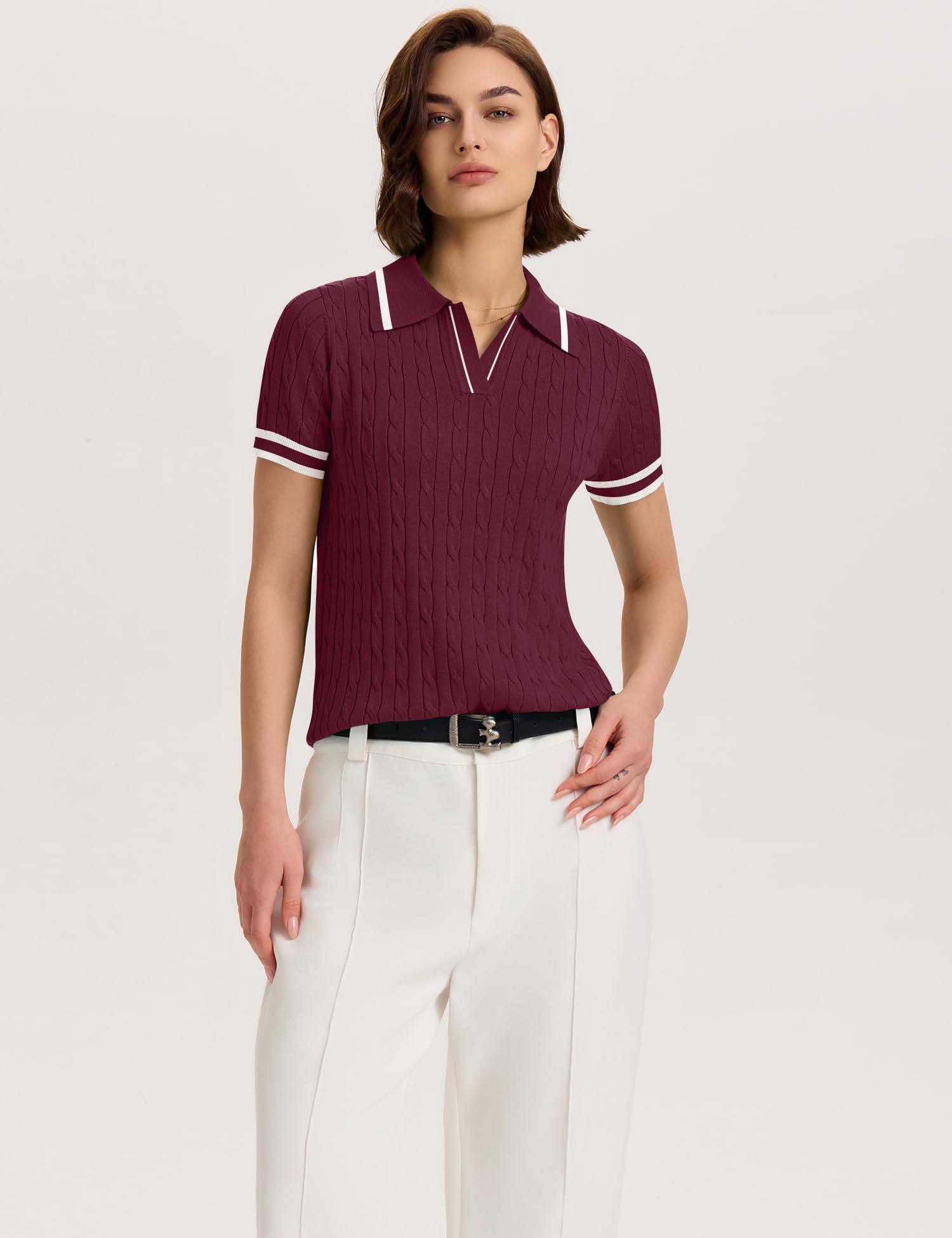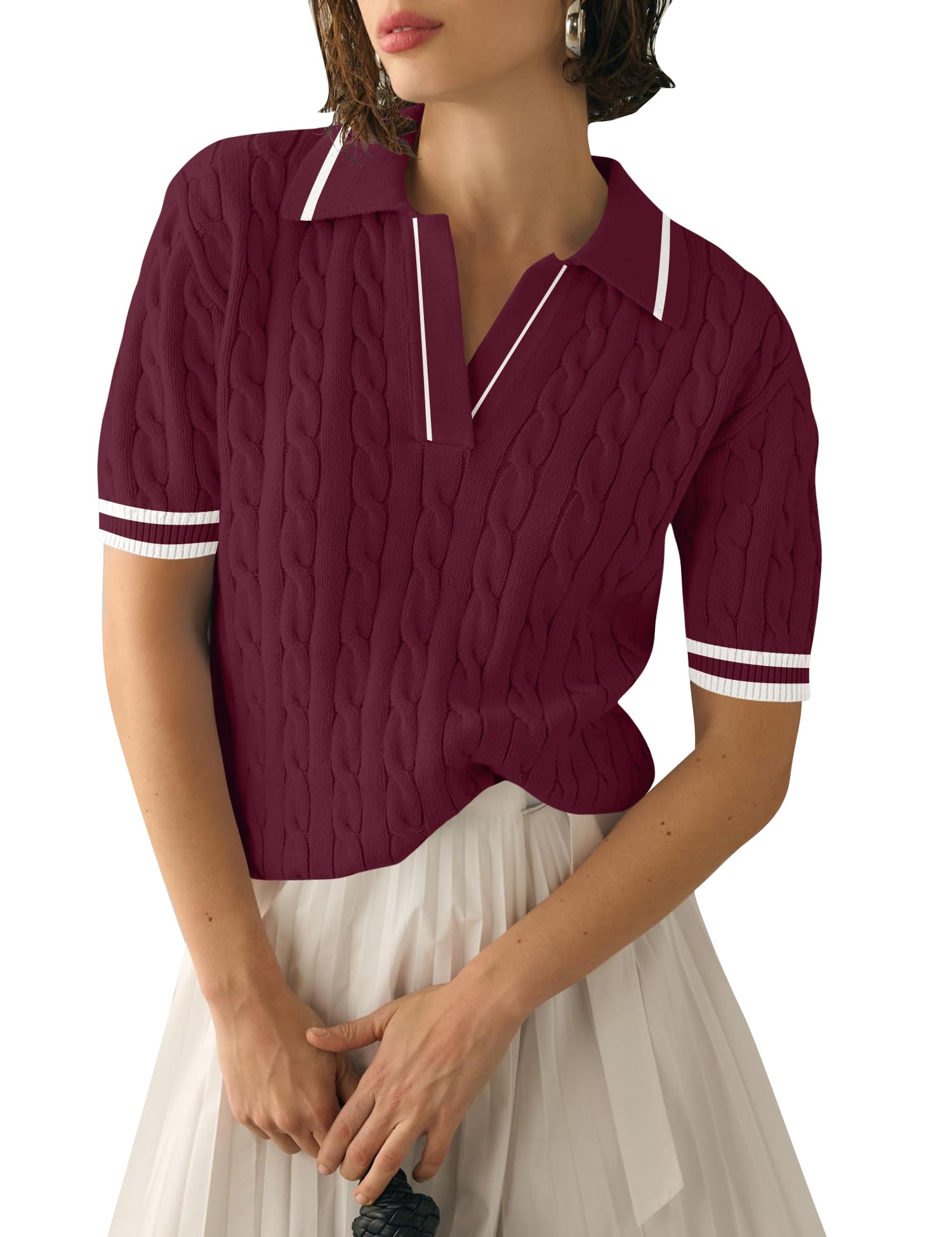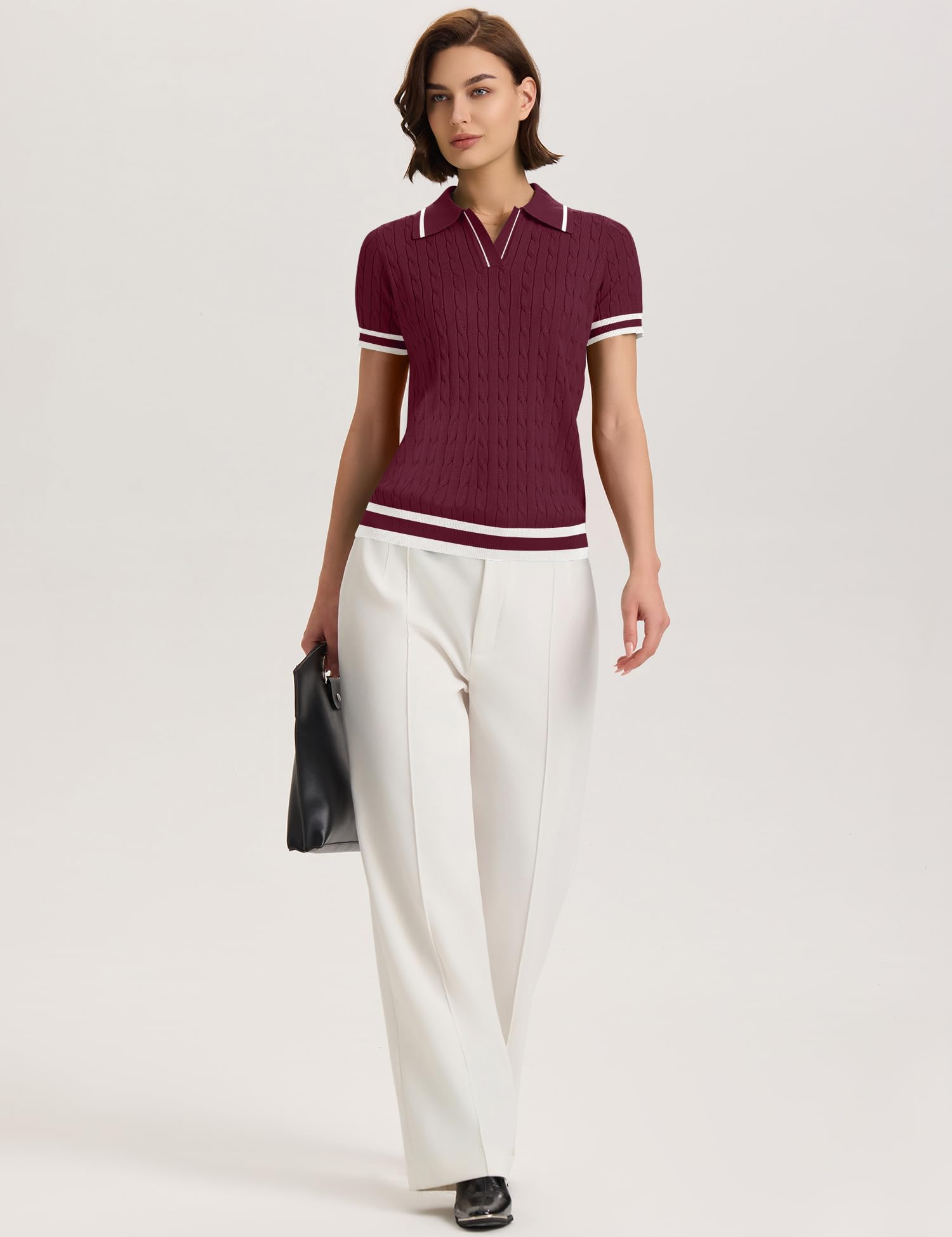 【Occasions】: This flattering cable knit shirts are perfect for daily casual, business meetings, home, shopping, dating, office, school, vacation, and any outdoor events. The short sleeve collared sweaters will keep you charming through spring, summer.