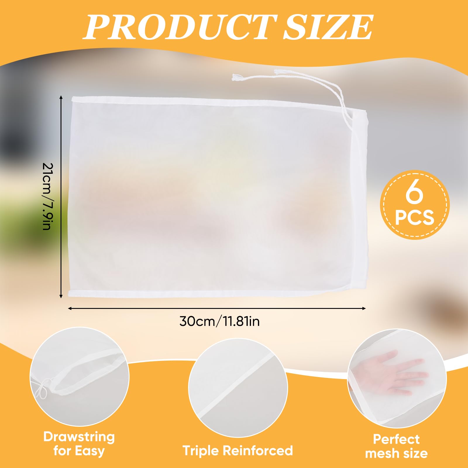 Value Pack: You will receive a 6-pack of cloth strainer for juicing, measuring approximately 30 x 20cm/12 x 8inch, reusable, cost-saving and sustainable, a perfect alternative to expensive filters.