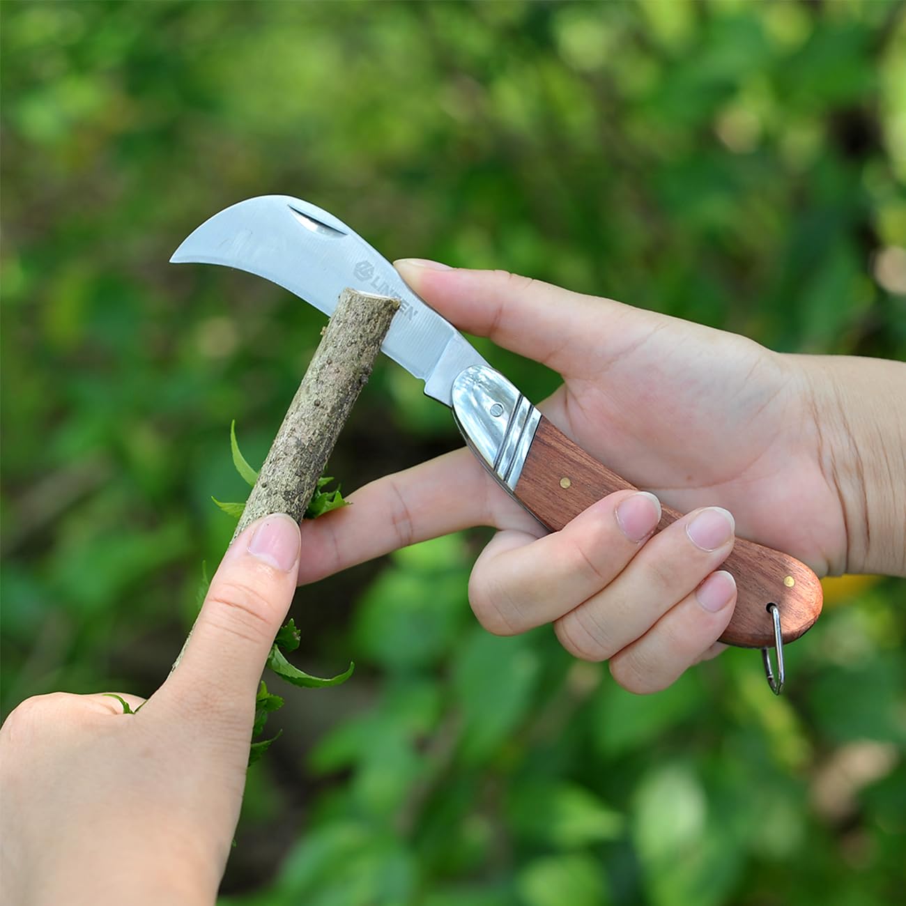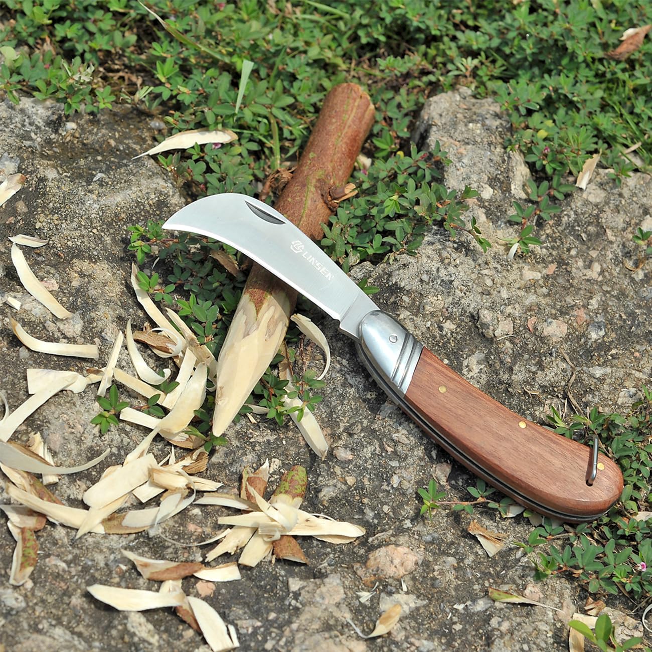 The Linsen-Outdoor Garden knife is a Useful Handy Grafting Knife! You can enjoy Amazing Budding in one step! This Knife Work For - Weeding lawns, vegetable beds and between pavers - Slice thin branches - Planting and transplant seedlings - Open feed bags, splitting pots and cutting string - Slice tap roots and breaking up clay-rich soil - Harvesting root vegetables easily. Knife Details: - 2.5 inch rust-resistant stainless steel Blade, Sanding Polished! - 4 inch Handle length, Comfortable Color wood with Ergonomics Design ! - The Blade is design to pluck out even the toughest weeds. This is Linsen-Outdoor Garden knife. Pick up your Linsen-Outdoors knife today! Add to Cart and buy Now!