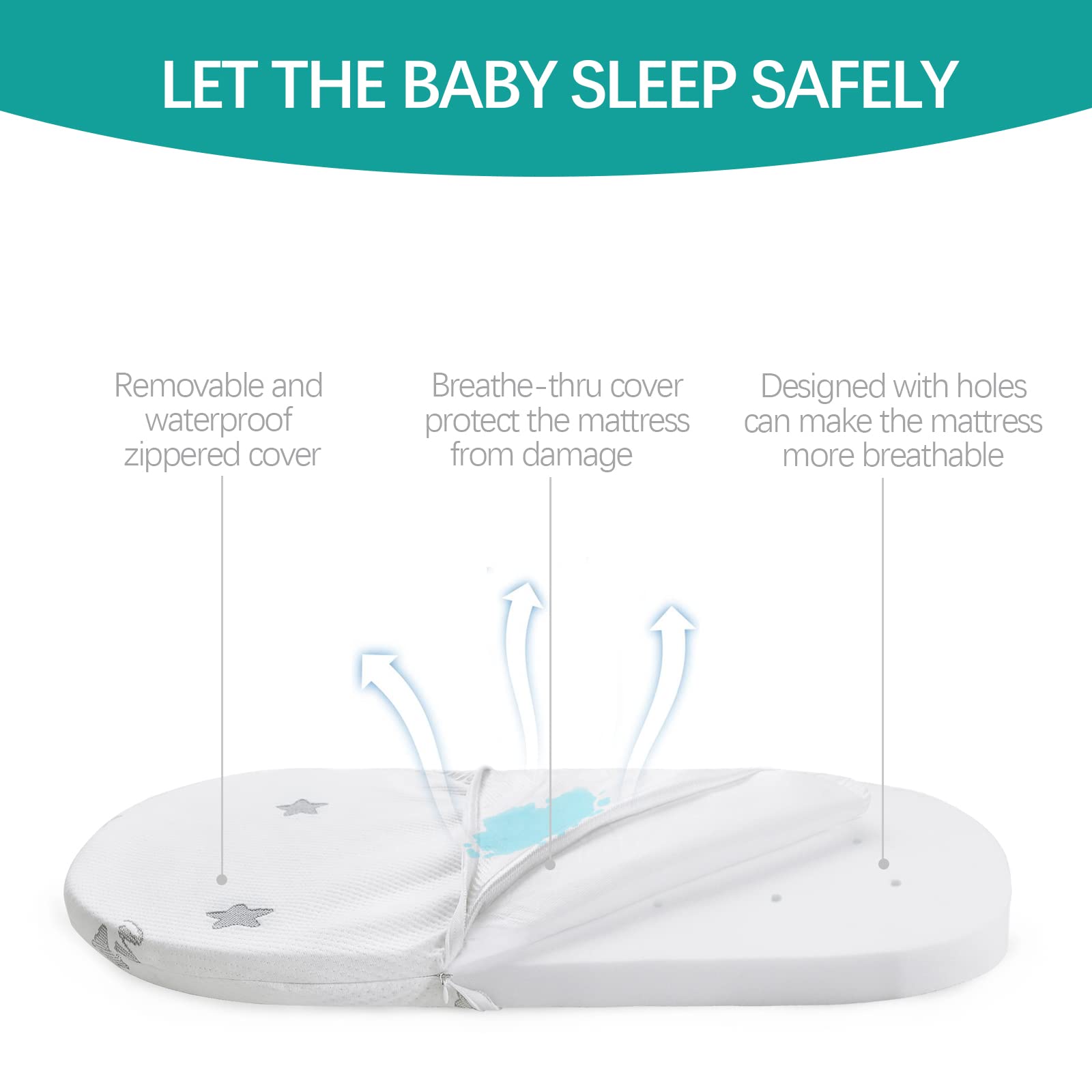 Removable and Waterproof Zippered Cover: Removable soft OEKO-TEX standard 100 certified cover with cute star print and TPU waterproof layer that can be washable and extremely soft to the touch for your baby, you never have to worry about accidents and keeping your bassinet mattress pad clean.