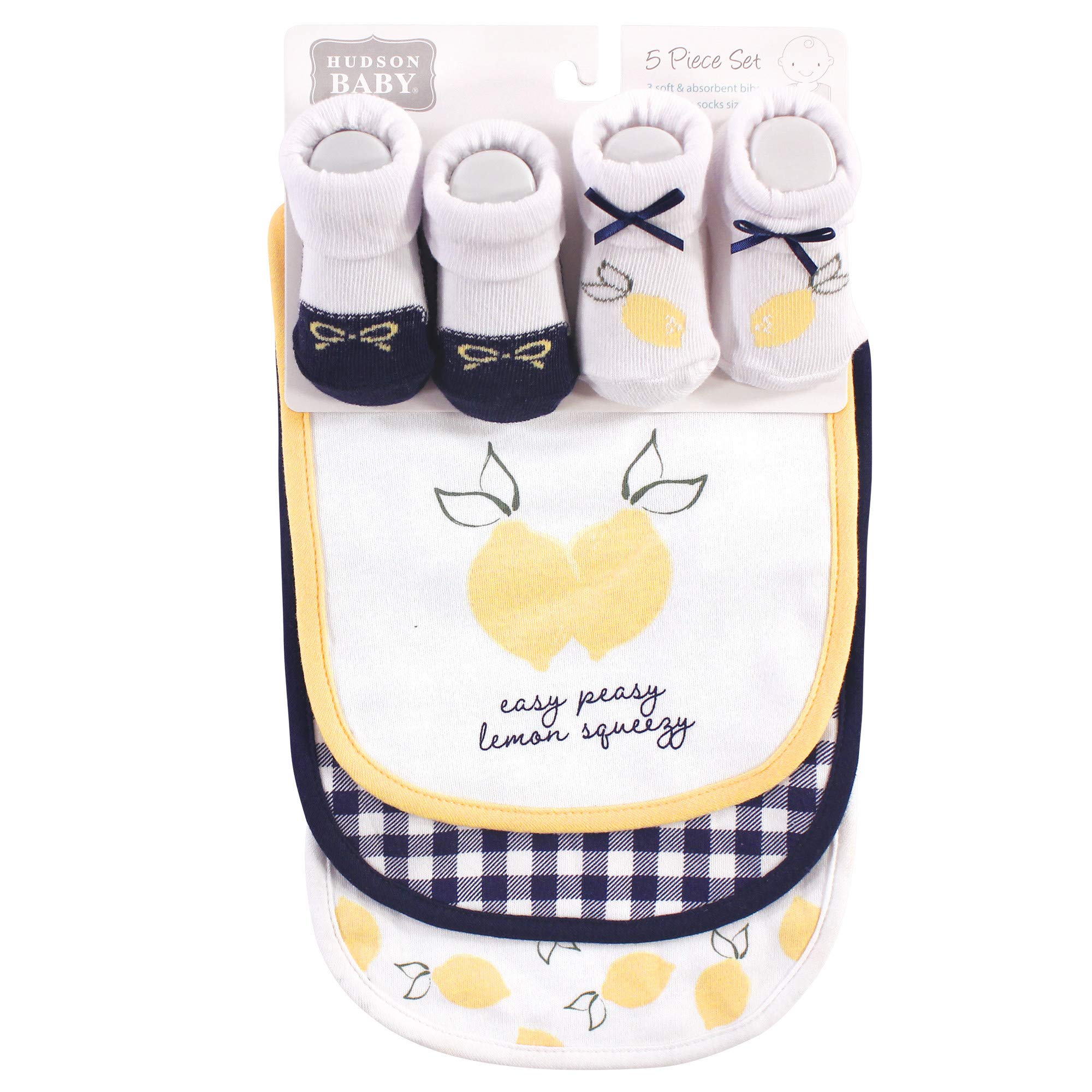 Description Hudson Baby bib and socks set are an adorable accessory set for fashionable matching bibs and socks. Each set features fun, cute bibs and socks made with coordinating fun, stylish prints. Our accessory set is a great baby shower gift.
