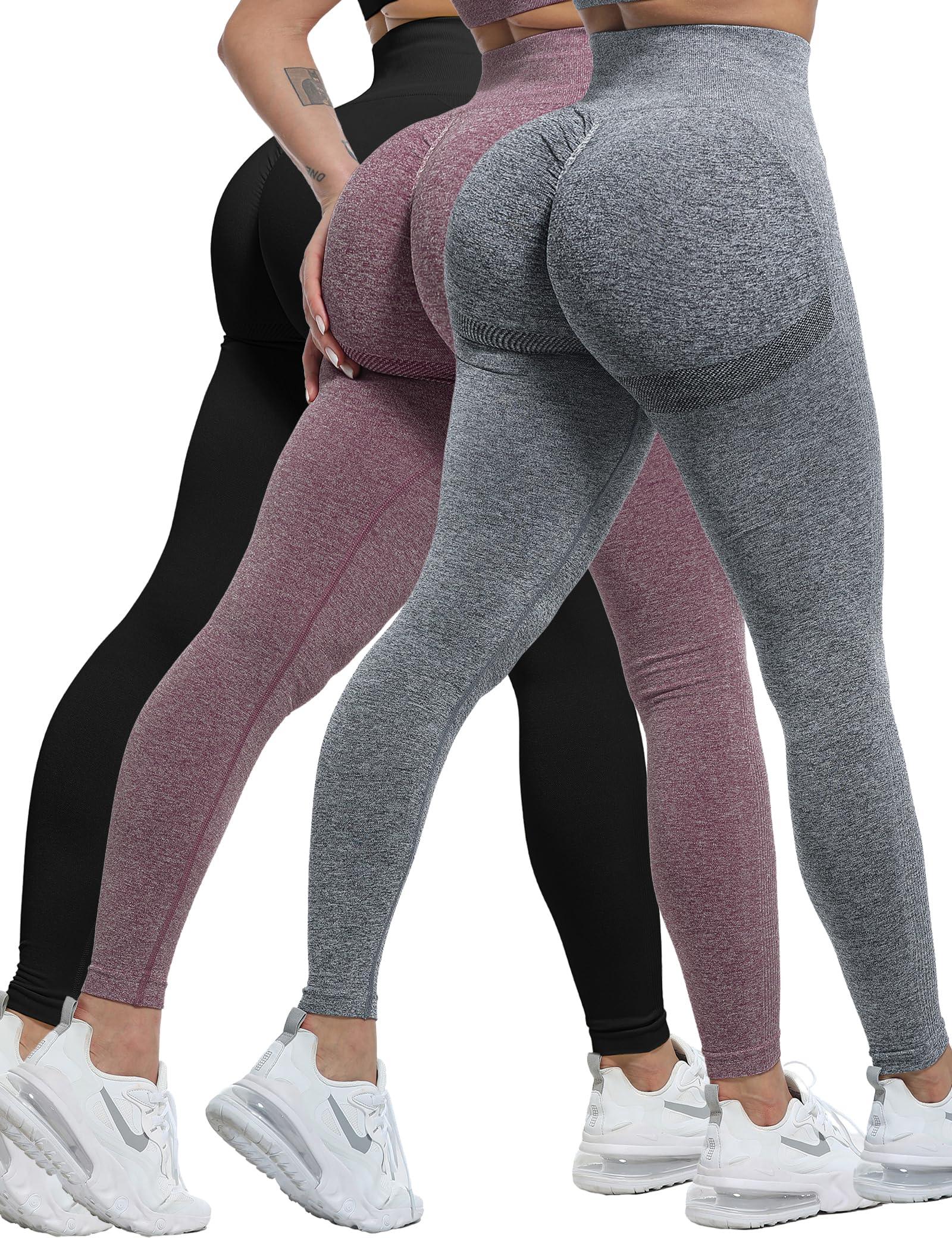 ✔ SEAMLESS HIGH WAISTED LEGGINGS - are what you’ve been waiting for, Their flattering fit and contouring ruched detail to the bum meet with a supportive and supple seamless fabric to advance your performance, Features compression in targeted areas that gently smooths and sculpts the backside and legs for a feminine, shapely look