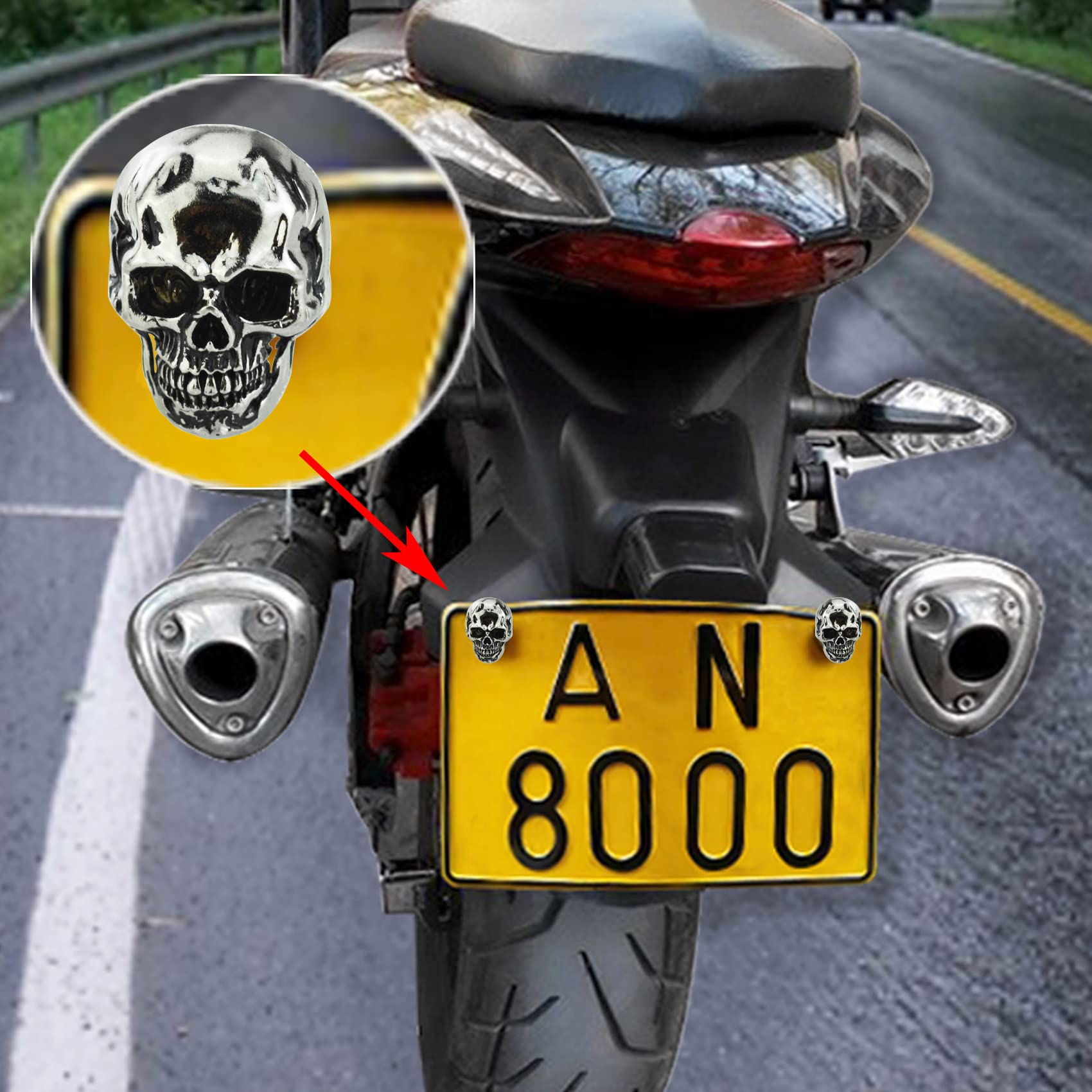 Function: The skull license plate can be tightened and fixed well, effectively preventing the license plate from being stolen or dropped.