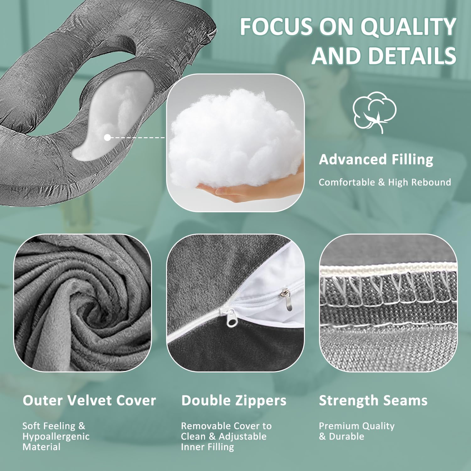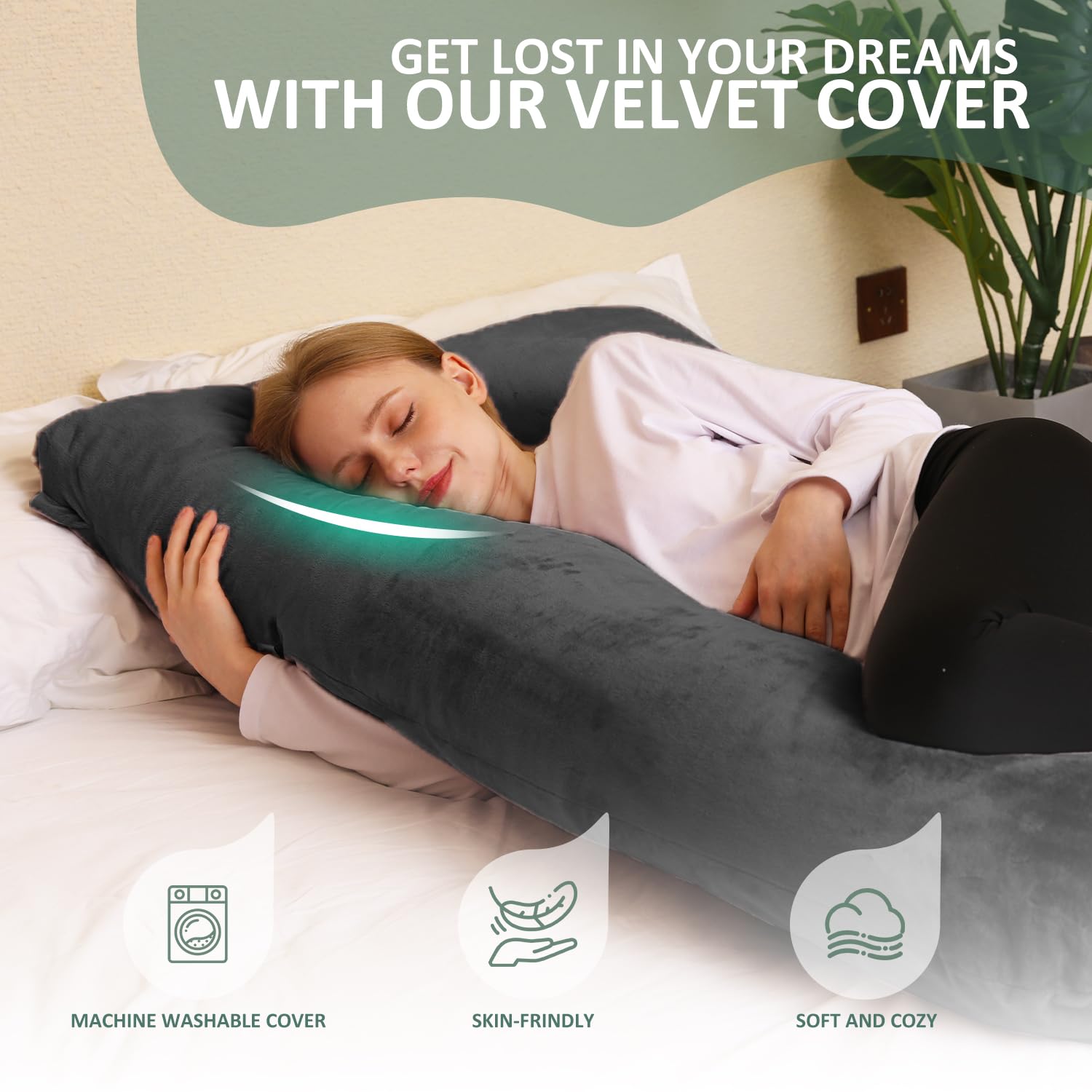 【COMFORT U SHAPED PREGNANCY PILLOW】The u-shaped pillow for pregnant women is long enough to stretch and support body as a pillow pregnancy for sleeping . The inner curves of u pillows for sleeping full body contours like pregnant body pillows for sleeping can align hips for neutral joint positioning. That is the feature as u shape body pillow to reach a stage that be a better pregnancy sleep pillow that pregnancy must haves.