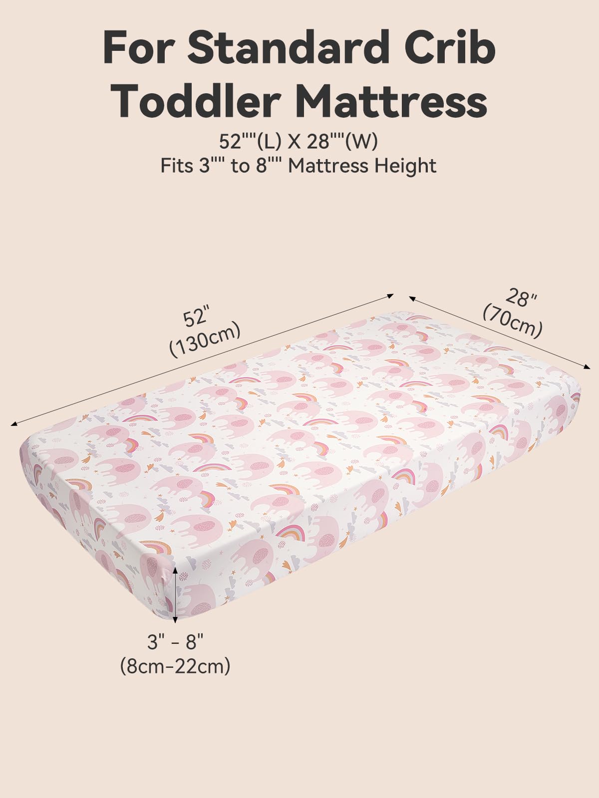 Fits perfectly: Comes with 28 "x52 " and fit almost any crib mattress on the market. Up to 8" Deep pockets ensure that the Sheet wraps tightly around the mattress and won't shift no matter what.