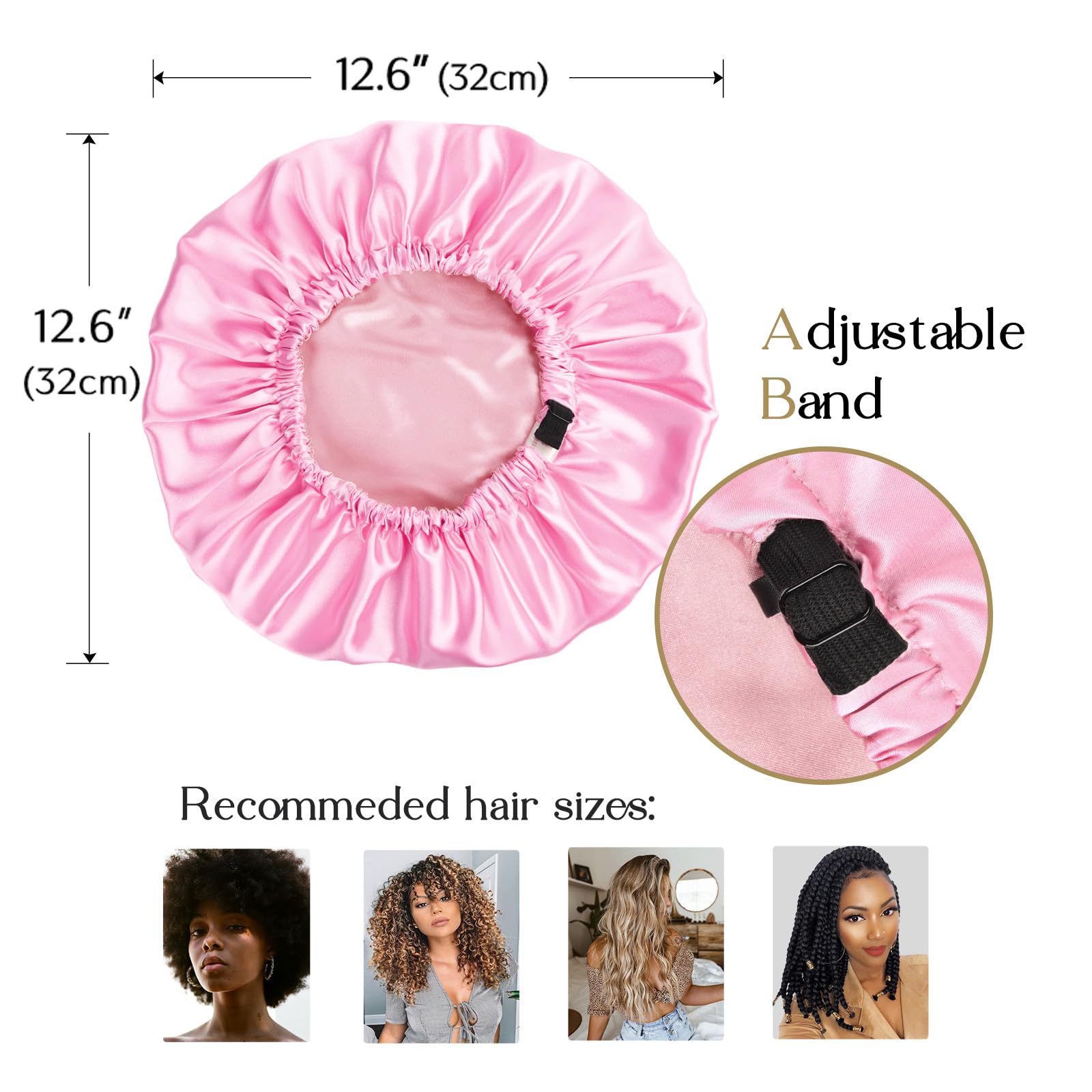 Double Layer Satin Bonnet: Reversible protection will keep your sheets clean when sleeping with overnight hair products. No color fade to your hair and the pillow. Reversible wearing with 2 colors, both sides are soft for hair