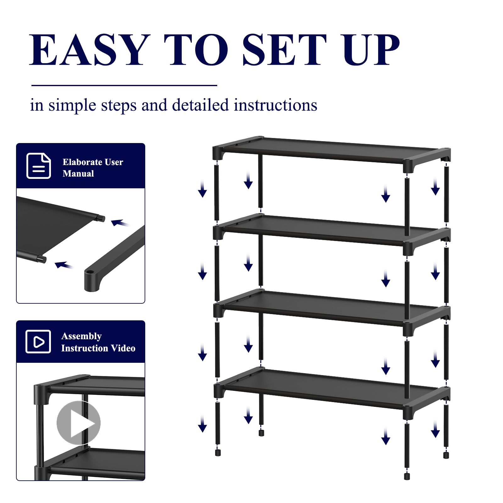 EASY ASSEMBLY: Kitsure provides step-by-step instructions and installation video to ensure quick and easy tool-free assembly. With only 4 steps you can easily set up this shoe rack organizer without screws or any other tools.