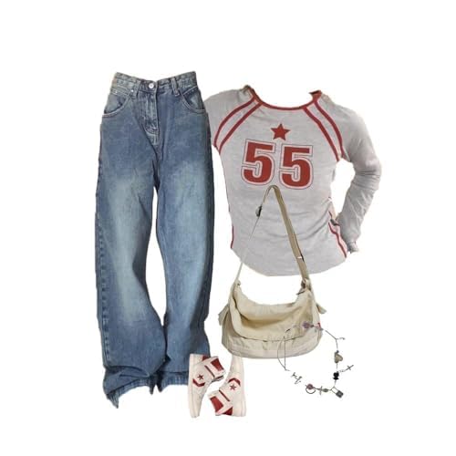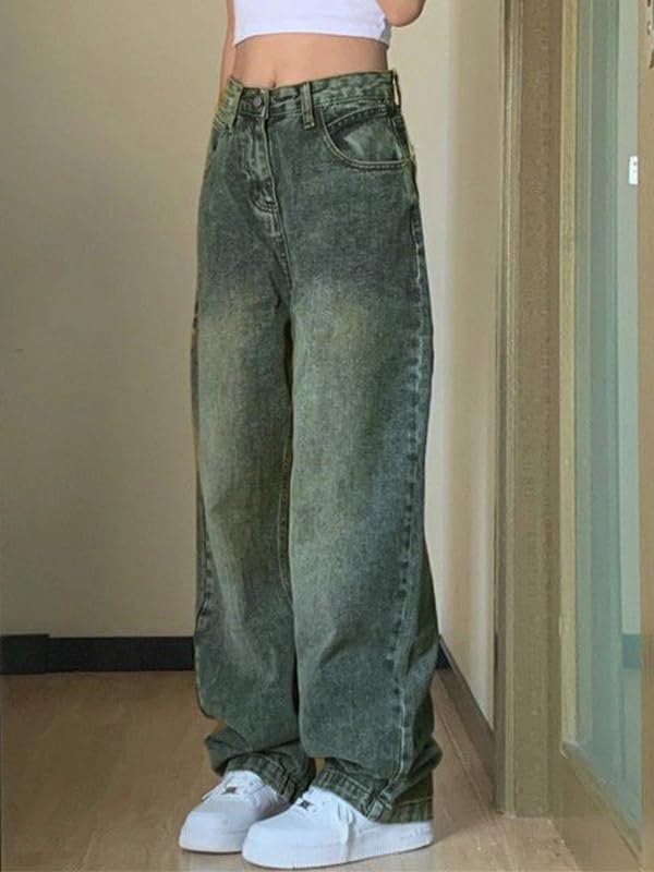 Vintage boyfriend jeans come with 4 traditional pockets. Intentionally distressed design in the pockets' edges, providing these women's jeans with both style and function. Y2k baggy jeans with zip fly, button closure and belt loops for your ease of use.