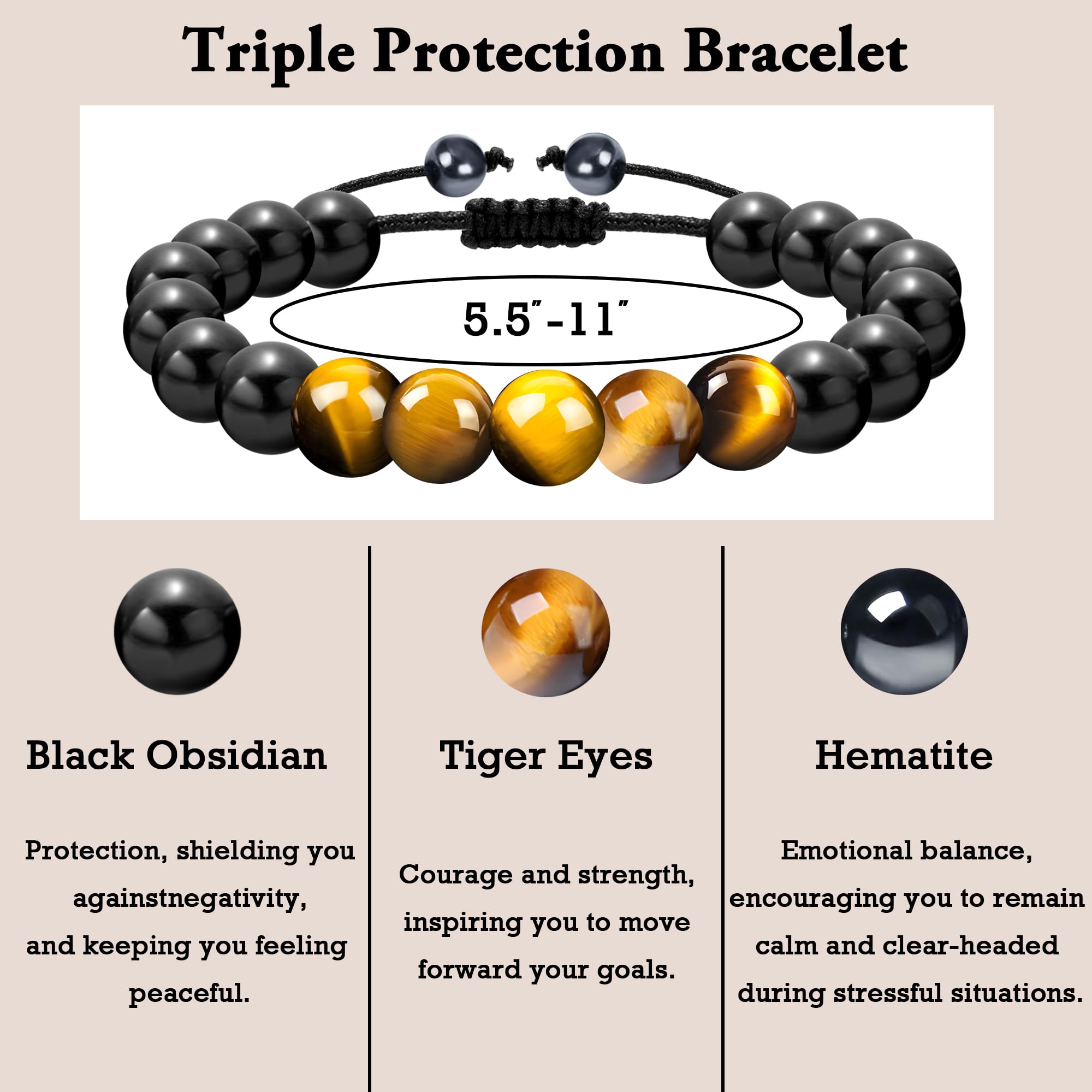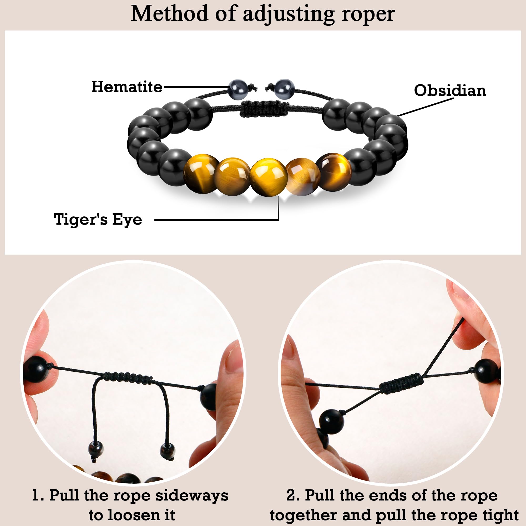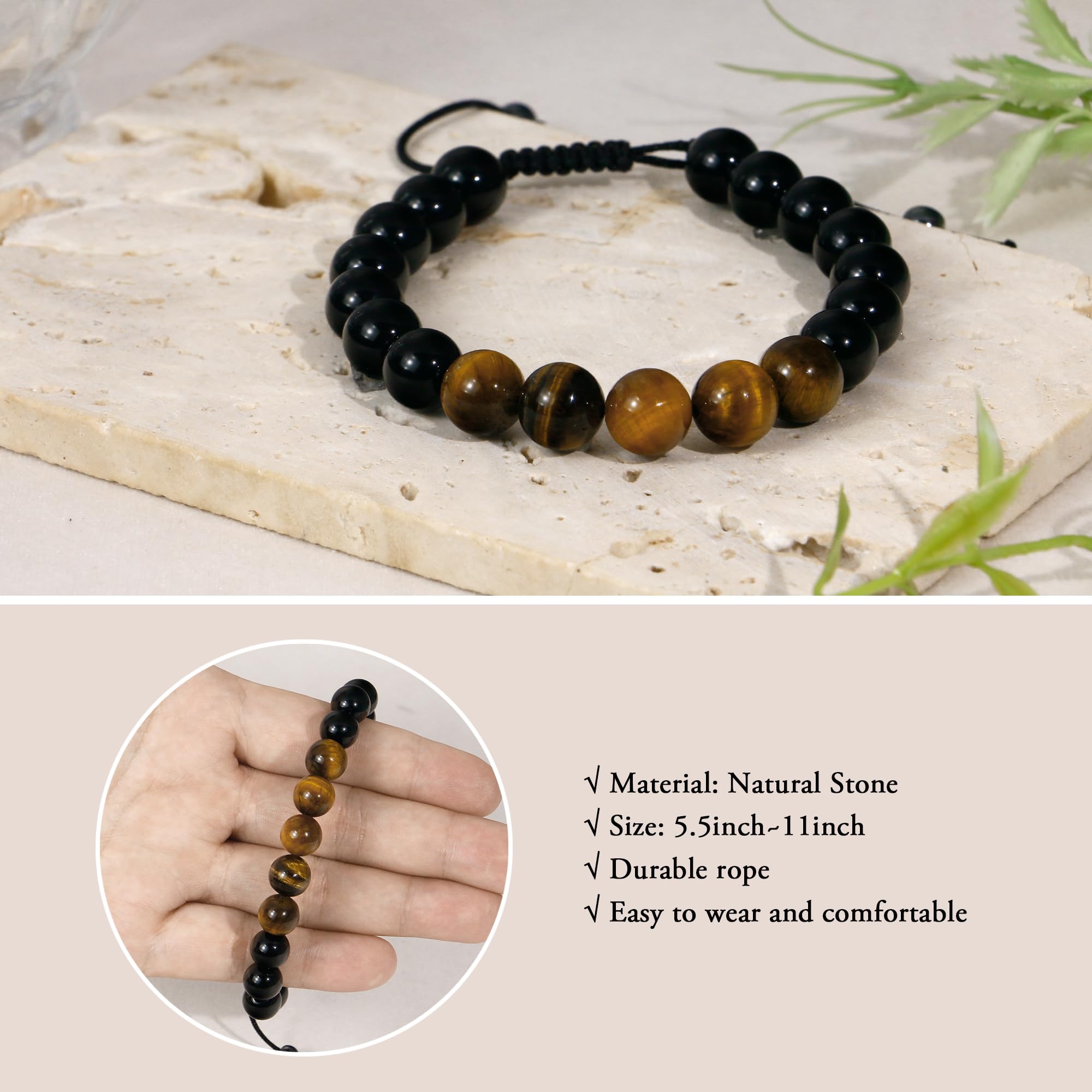 High Quality Materials: Our men's bracelets are made of natural tiger eyes Handmade with hematite and obsidian,and fitted with durable ropes,it is resistant to wear and tear,comfortable and meets long-term needs.