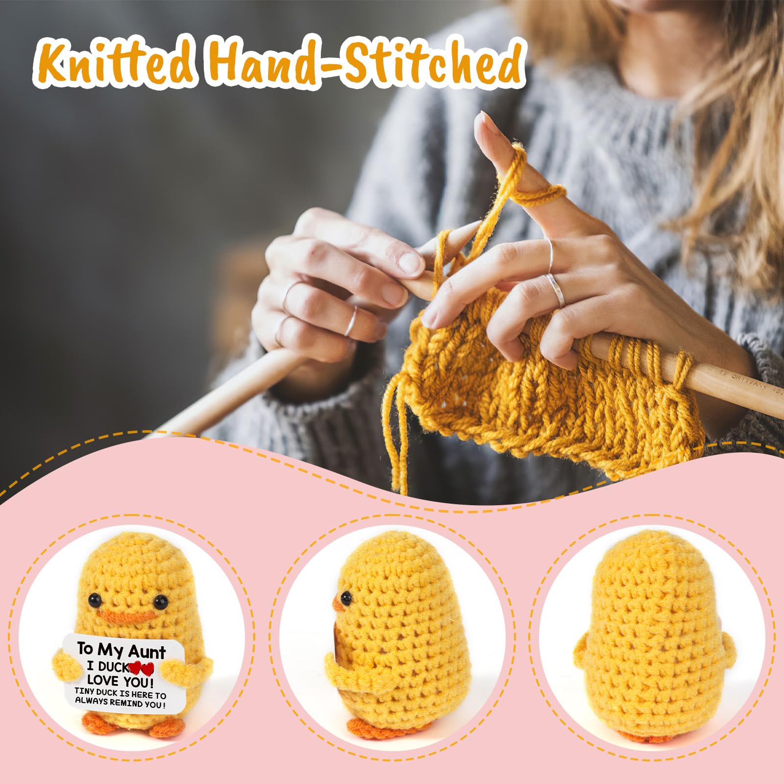 Birthday Gifts for Aunt: 【Note: THIS ITEM IS NOT INTENDED FOR USERS UNDER 12 YEARS OLD】.A delightful pocket companion that brings smiles and spreads positive vibes wherever your aunt goes! This adorable knitted duck is more than just a plush doll. With its special reminder card, it becomes a unique and creative way to express your love for your aunt.