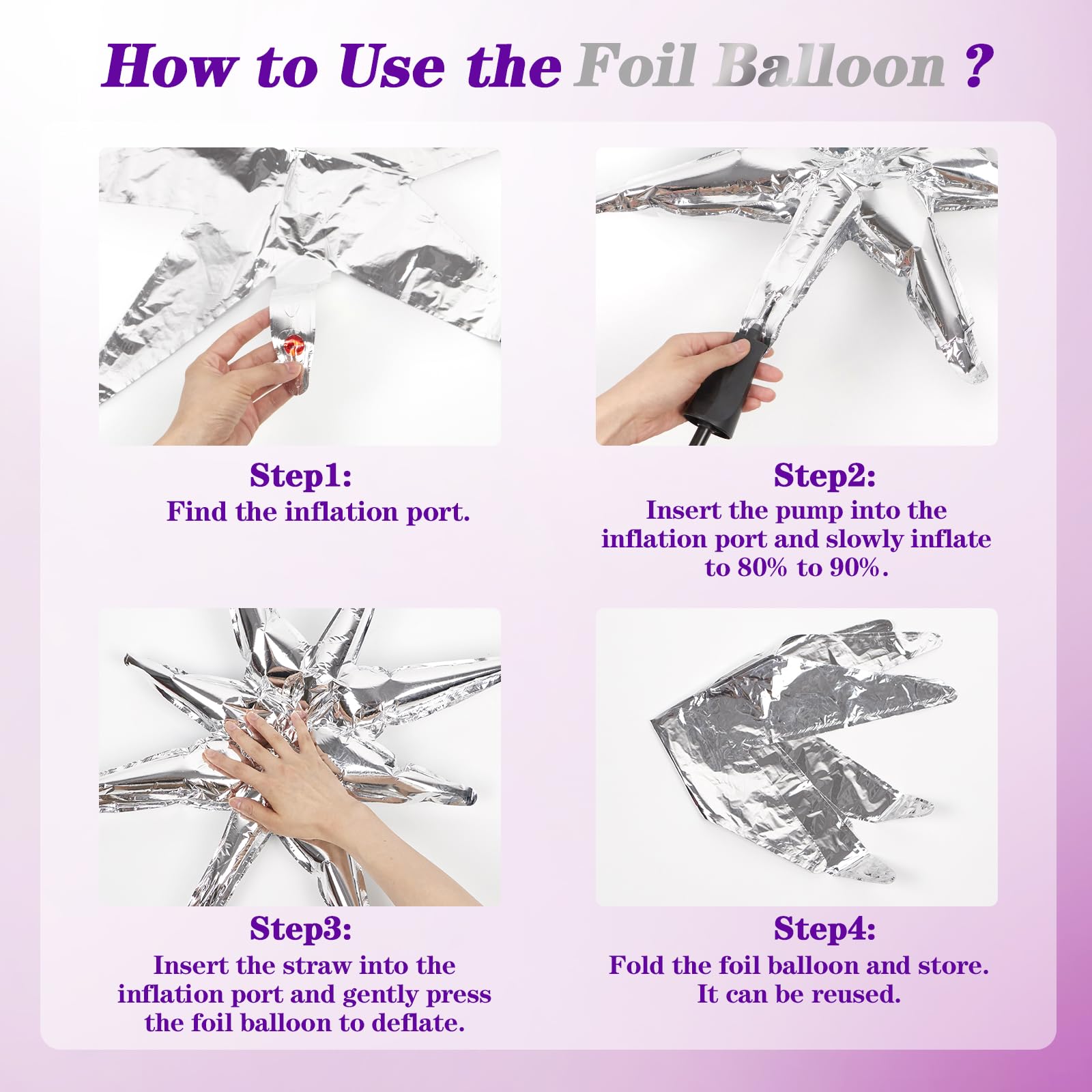 Ease of Assembly: The purple balloon arch kit have ribbon, glue dot, decorative strip to help complete balloon arch kit more easily. first, Inflate the purple and silver balloons with pump, crossing each other to form some balloon clusters. Then, insert the balloon knot into the decorative strip hole, or tie them together with ribbon to form balloon arch. Finally, hang it on the party backdrop, use glue dots to attach 5 inch balloons to fill space area