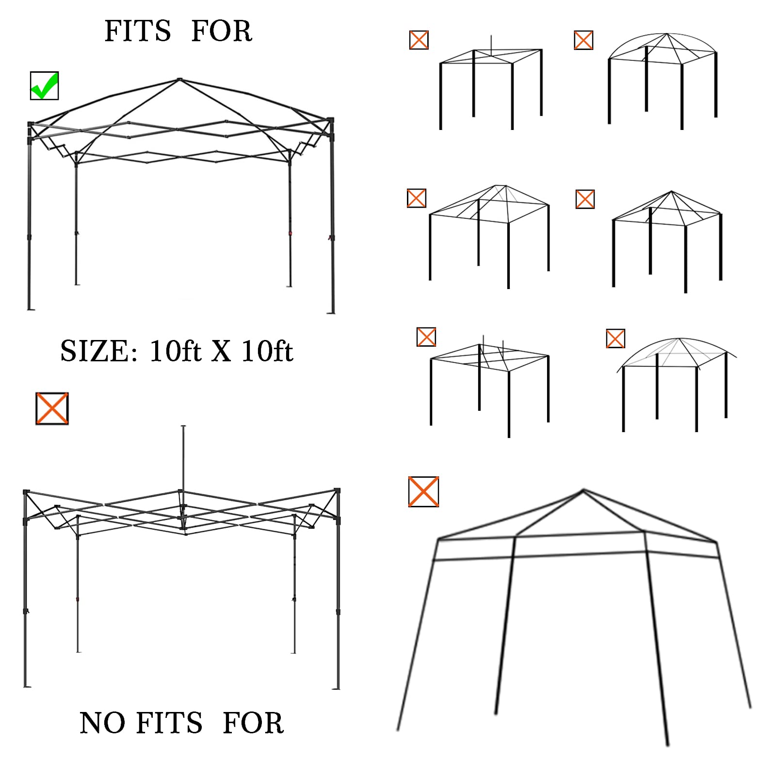 Effect: Our replacement canopy top is made of heavy-duty fabric, which can fully resist the sun, wind, rain and snow, it allows you to travel without worrying about the weather changes. Canopy top suitable for most of the standard canopy frames with 4 straight foot legs, a good choice for replacing your broken one or buy it as a backup.