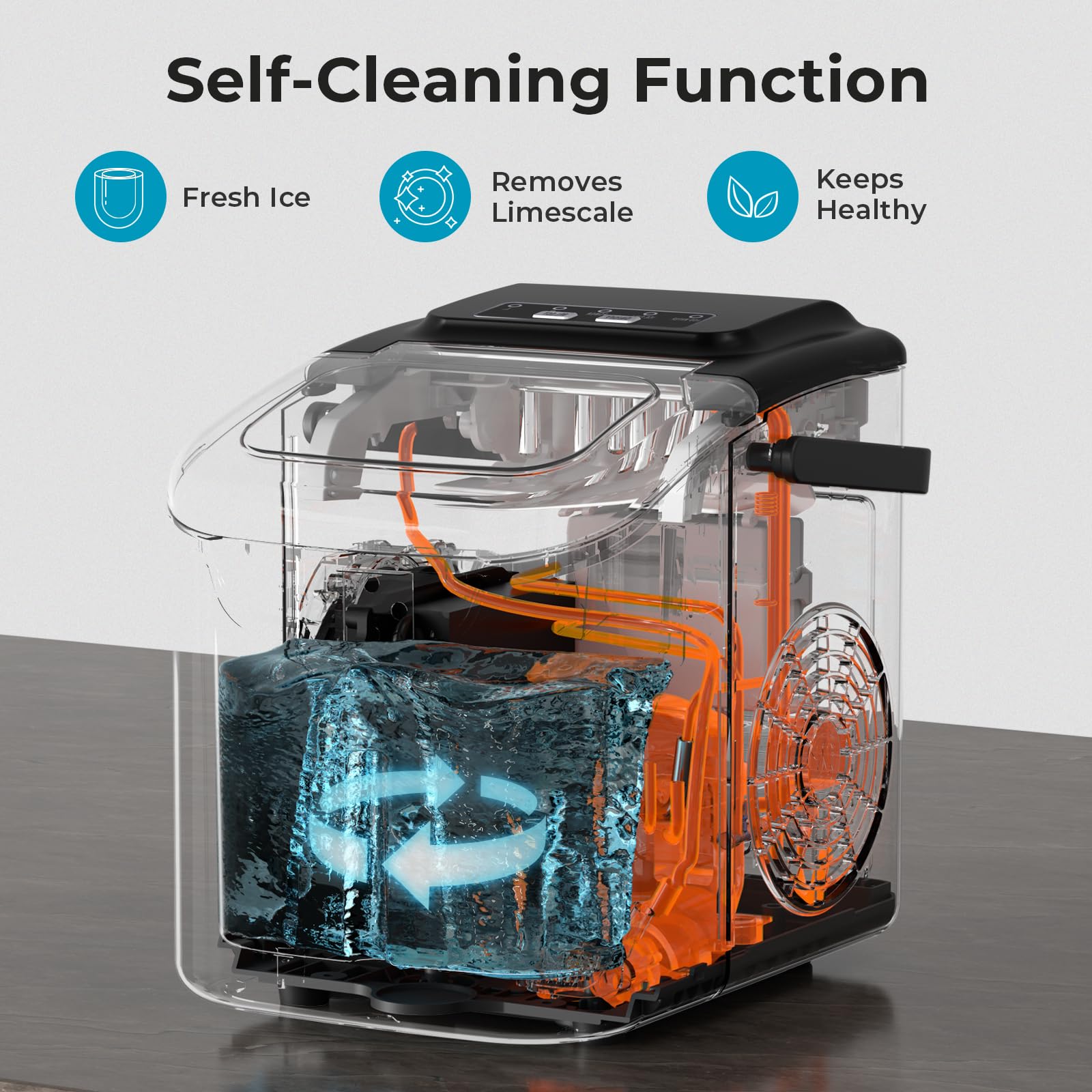 Smart Self-Cleaning Ice Maker:Auto-cleaning function eliminates mineral buildup with one-touch activation, ensuring hygienic bullet ice/crushed ice production. Ideal for countertop nugget ice makers requiring low maintenance.