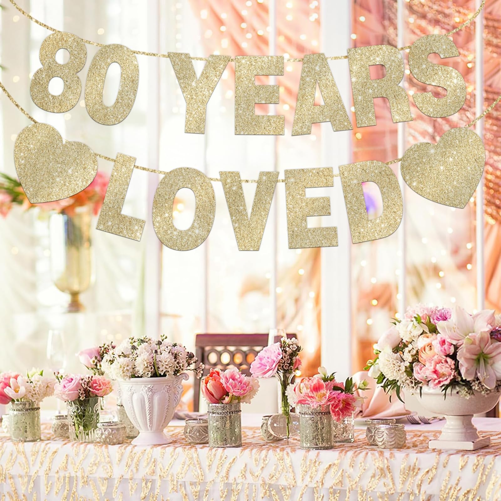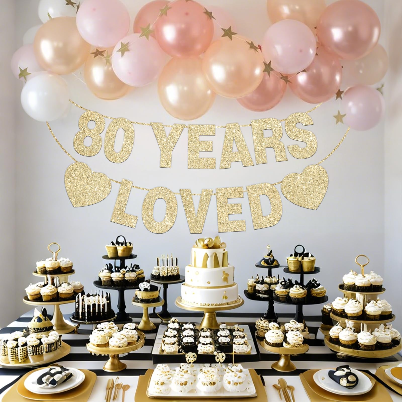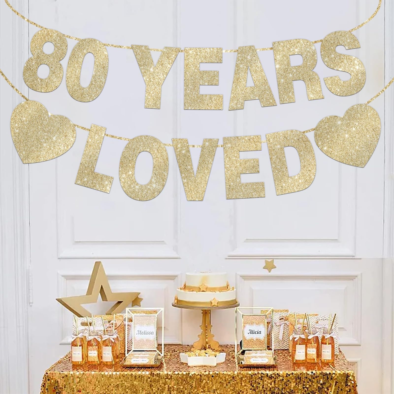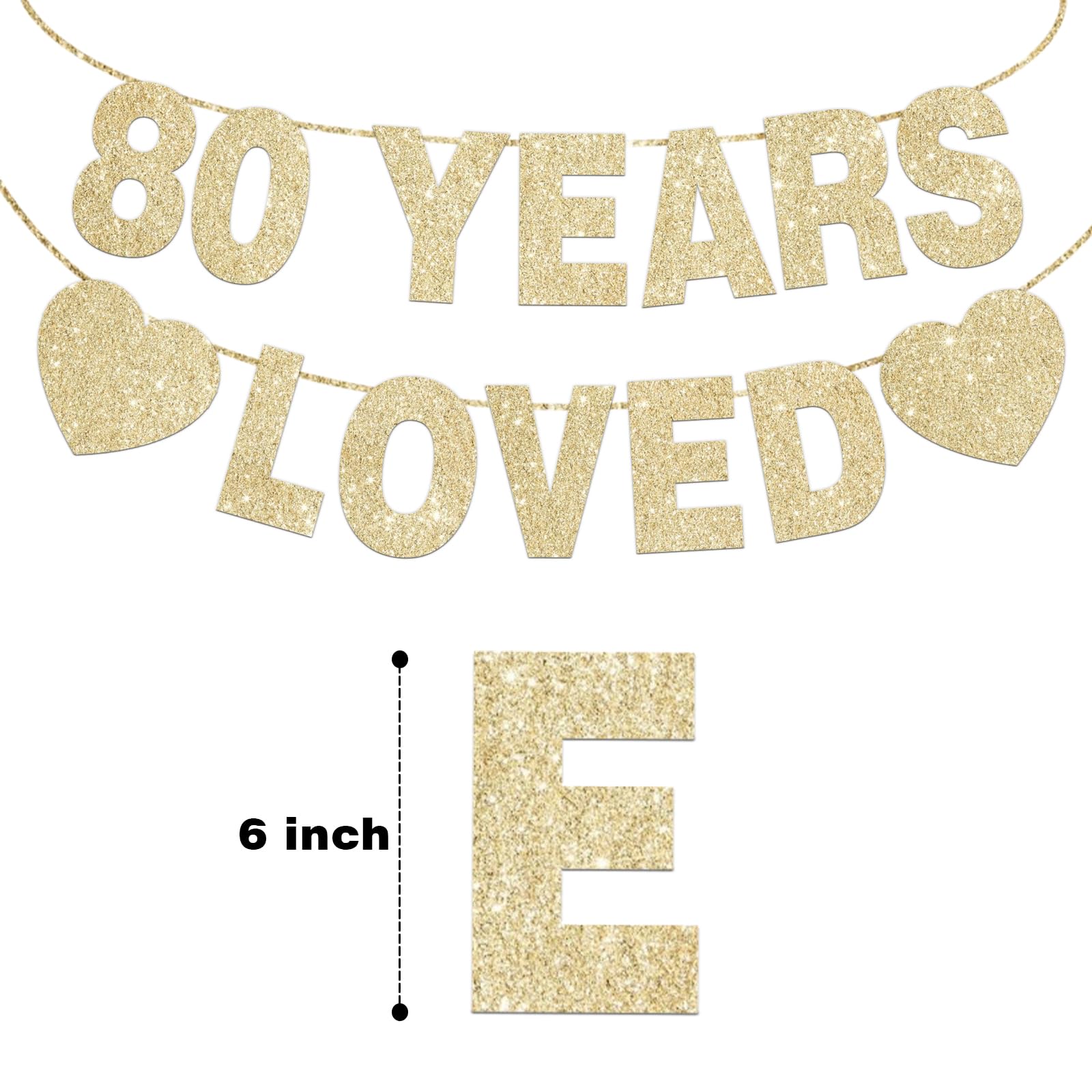 【Package Included】:1 pack gold glitter 80 years loved banner with 14 pcs cards and 2 ropes to create the bunting.These 80th banners can add elegance to your 80th birthday parties.