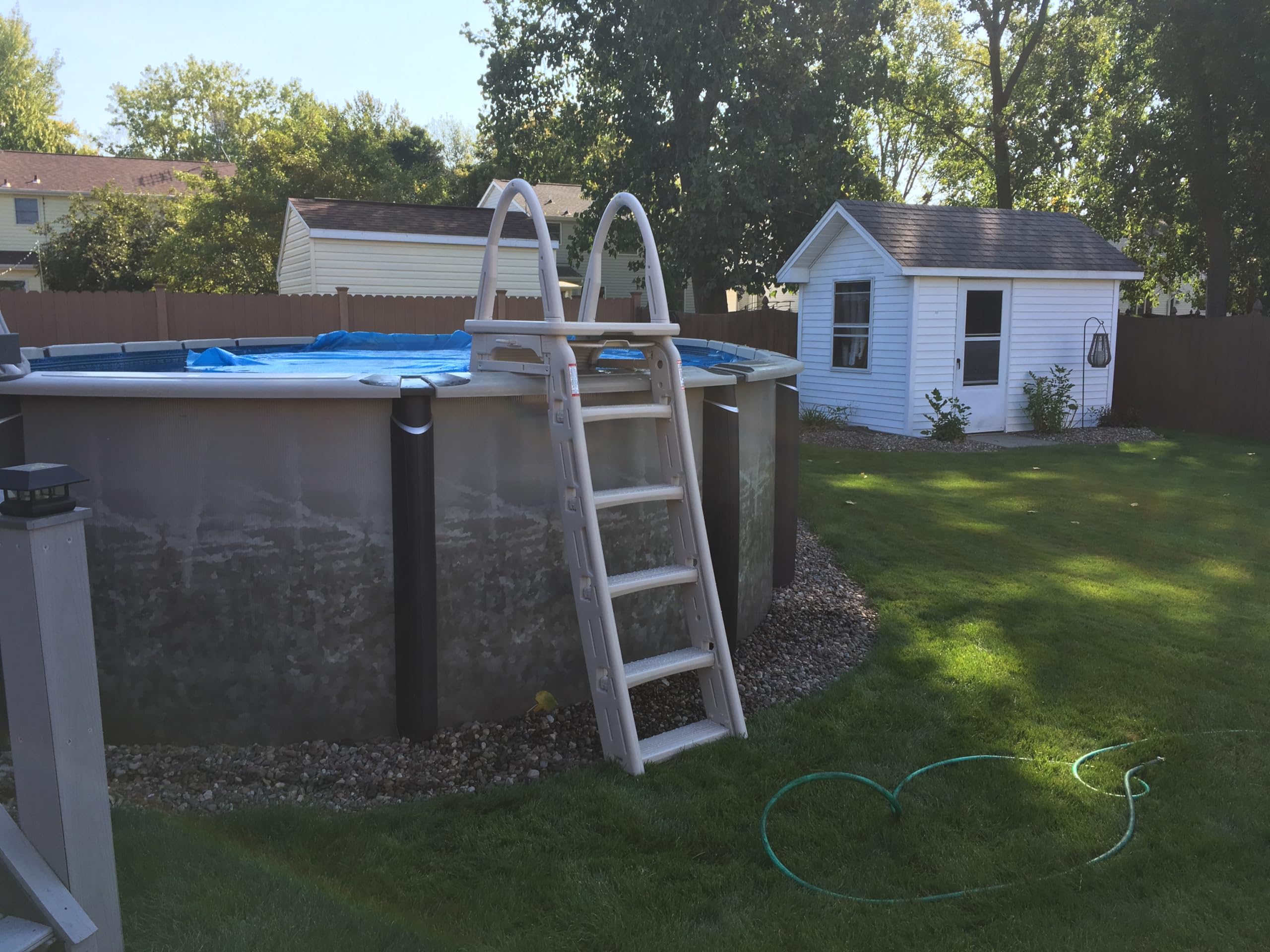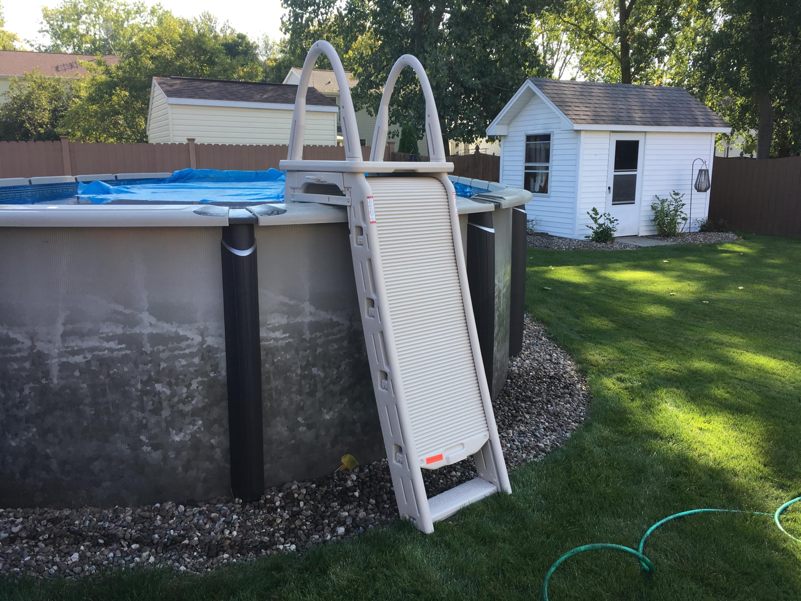 Stable Step: Pool step ladder provides stability with every step with the large 5-inch by 18-inch Comfortread steps, extra-large platform, and curved side rails. Fits pool toprails up to 14 inches wide