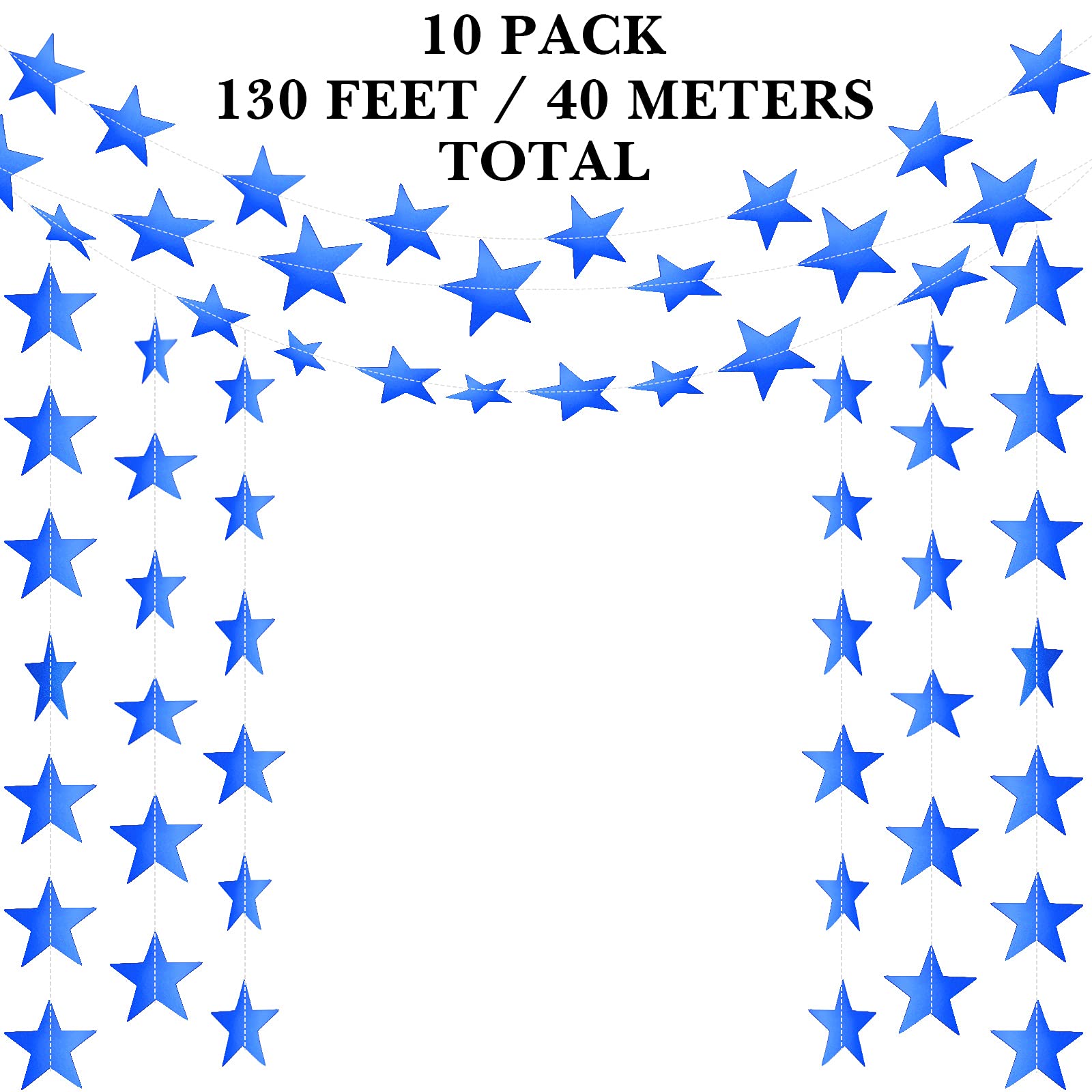 Extensive Decoration Set: this package contains 10 separate star garland strands; Each strand extends to a length of 13 feet/ 4 meters, providing a total decorative length of 130 feet/ 40 meters; The individual paper stars measure 2.75 inches/ 7 cm across; This substantial quantity allows for comprehensive coverage and creative arrangements, meeting the demands of various party and event decoration projects