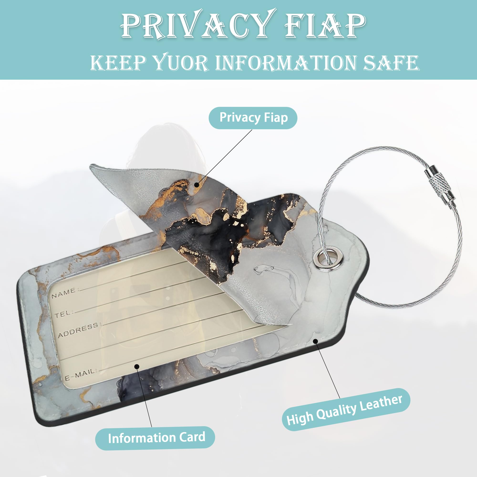 【Privacy Protection】Privacy cover id label avoid snooping and improve security. Luggage tag designs with a privacy back cover to fully hide your owners information. Since there is transparent interlayer without taking the tag apart, and protect your information from being damaged by elements (rain, being crumpled) when traveling.