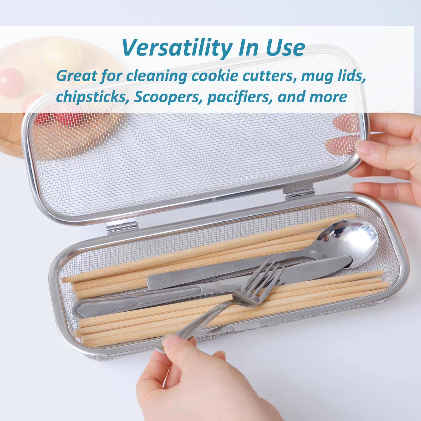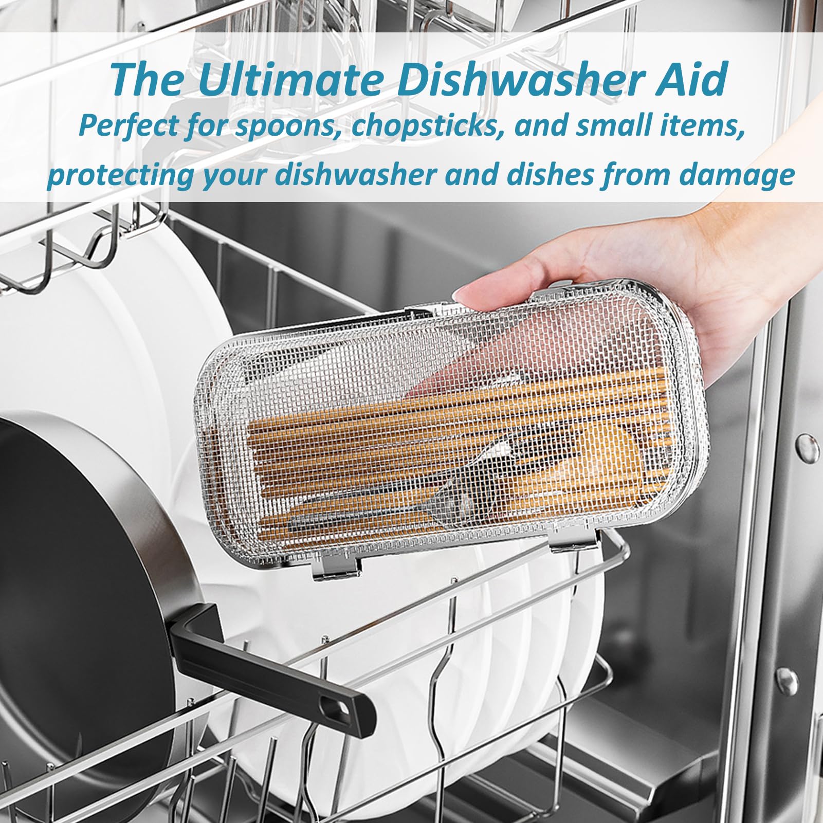 Engineered for precision, this stainless steel dishwasher basket combines commercial-grade durability with smart space optimization. Its patented extended buckle design secures chopsticks/utensils up to 27cm, while 12-mesh airflow technology ensures spotless drying. Custom-sized to fit 95% dishwasher models, it prevents small item loss and cabinet scratches – now with 3-year rust-proof warranty