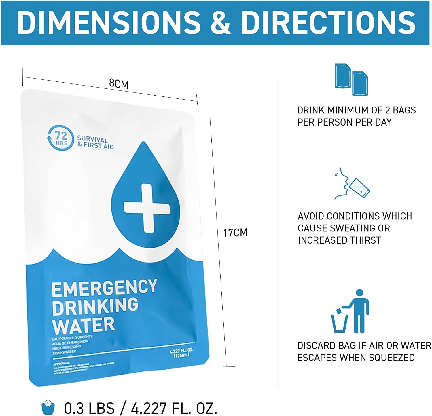 Reliable Resource: Ensure your safety with emergency drinking water that is easy to store and transport; ideal for unexpected pouched water emergency scenarios