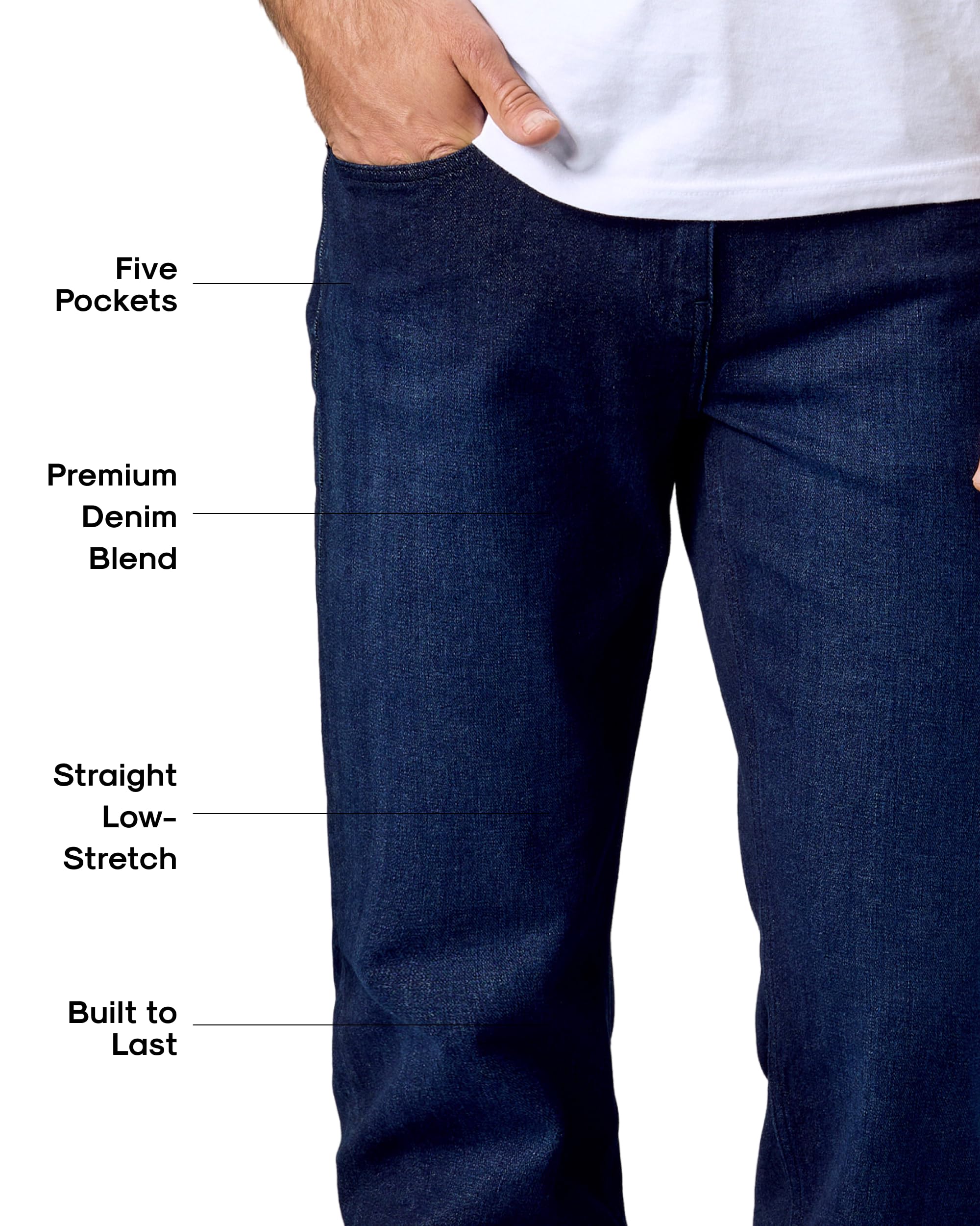 DURABLE & LONG LASTING: Designed to hold up through daily wear, these jeans maintain their shape, resist fading, and deliver consistent comfort. Reinforced stitching adds strength without sacrificing style. They are the dark blue jeans men love.