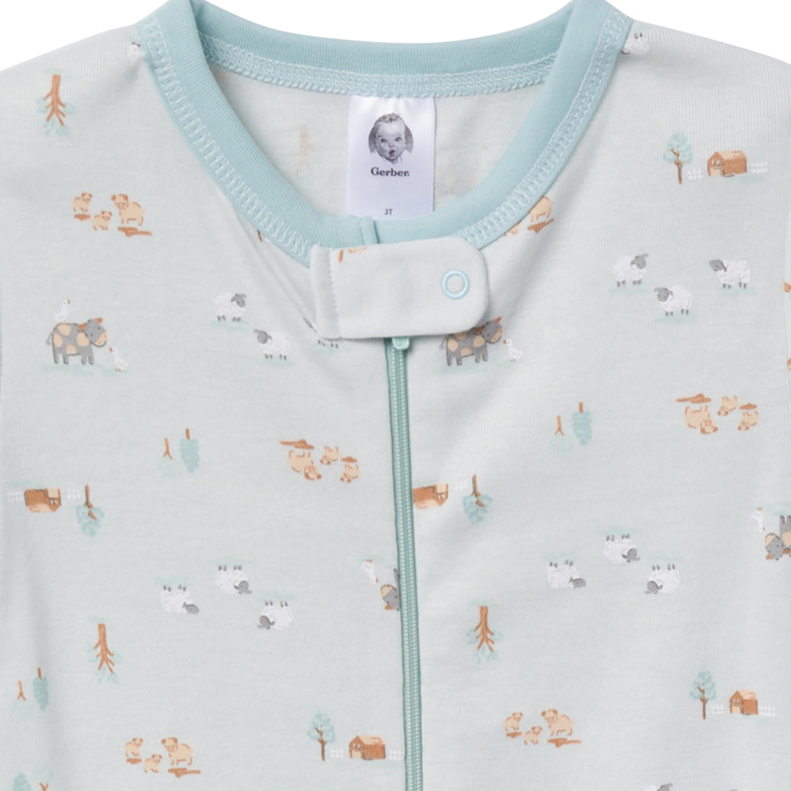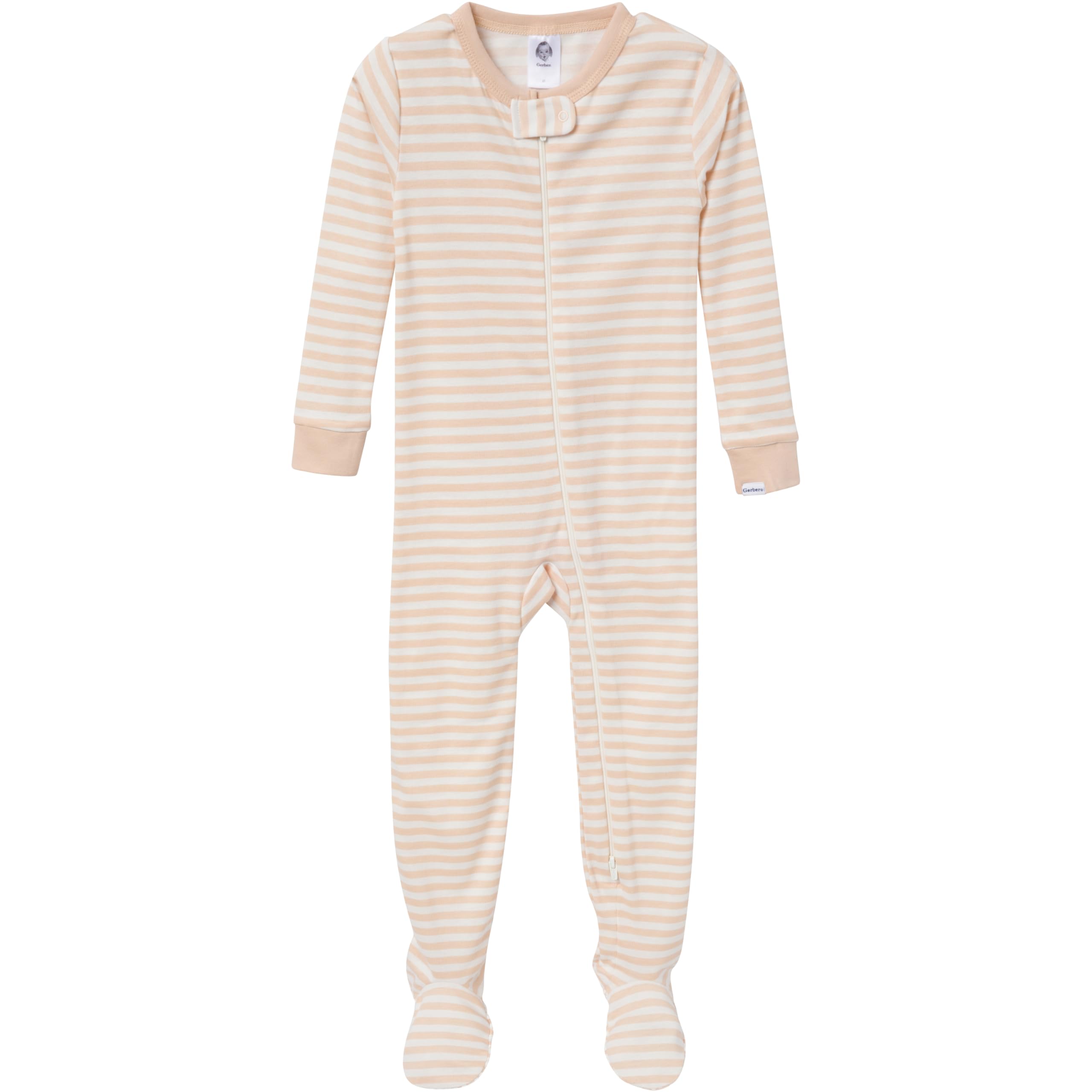 Description This 4-pack of baby or toddler pajamas is the perfect way to prepare for colder weather, keeping little ones cozy all season long. Crafted primarily from soft cotton, these pajamas offer a breathable and gentle feel against the skin, making them ideal for a comfortable night’s sleep. A two-way zipper with a neckline guard ensures easy dressing and diaper changes, while spandex trim at the neckline and wrists provides a flexible, secure fit. Designed with a tight-fitting style for safe wear, these pajamas also feature non-skid soles to provide extra traction and support for little feet. Whether you’re stocking up for your own child or looking for a thoughtful baby shower gift, this multipack is a cozy, practical choice.