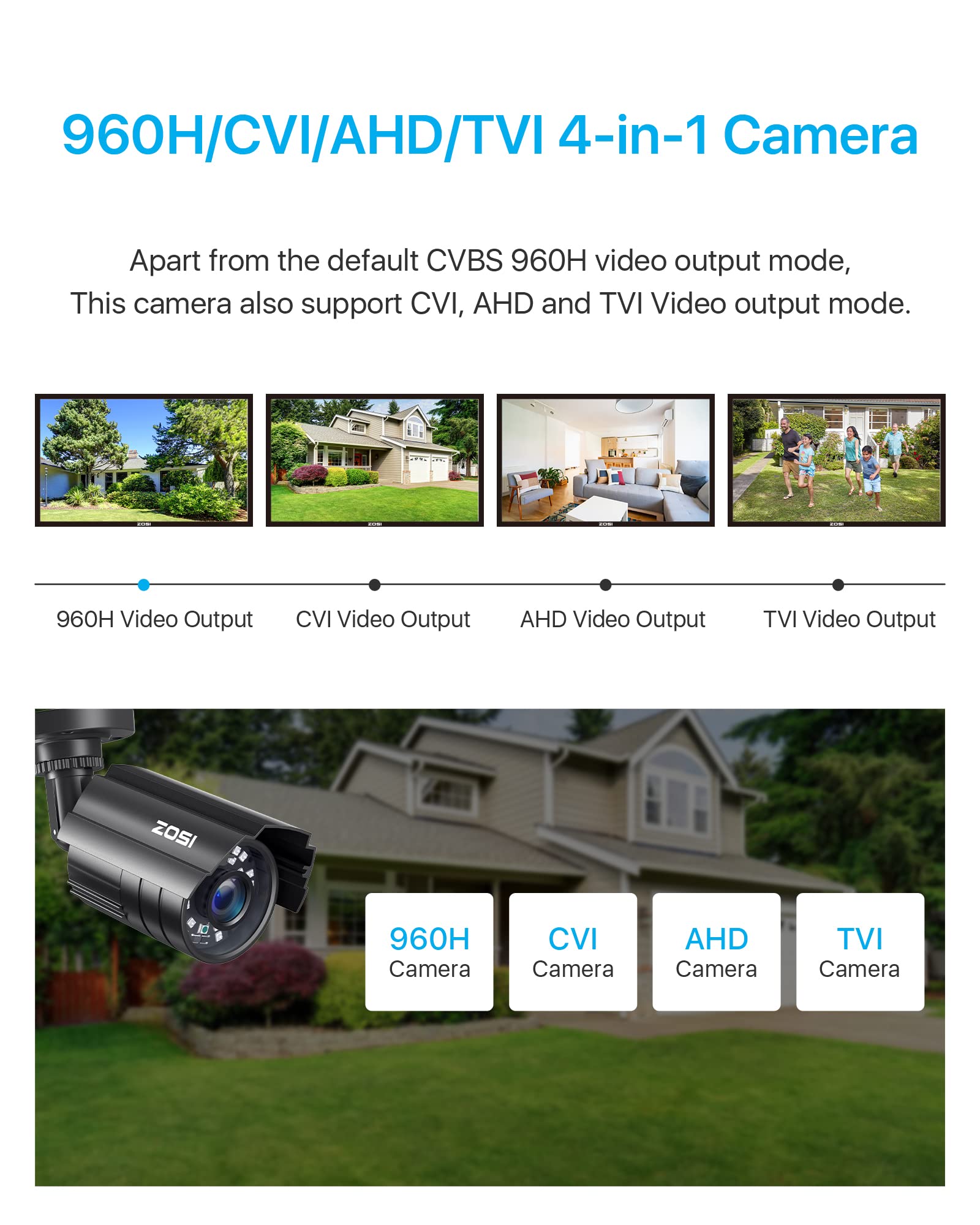 【2MP HD 1080P 4-IN-1 Security Camera】This is 4-in-1 TVI/CVI/AHD/CVBS bullet camera. It is compatible with 960H,720P,1080P,3MP,5MP,8MP,4K HD-TVI, AHD, CVI, and CVBS/960H analog DVRs.