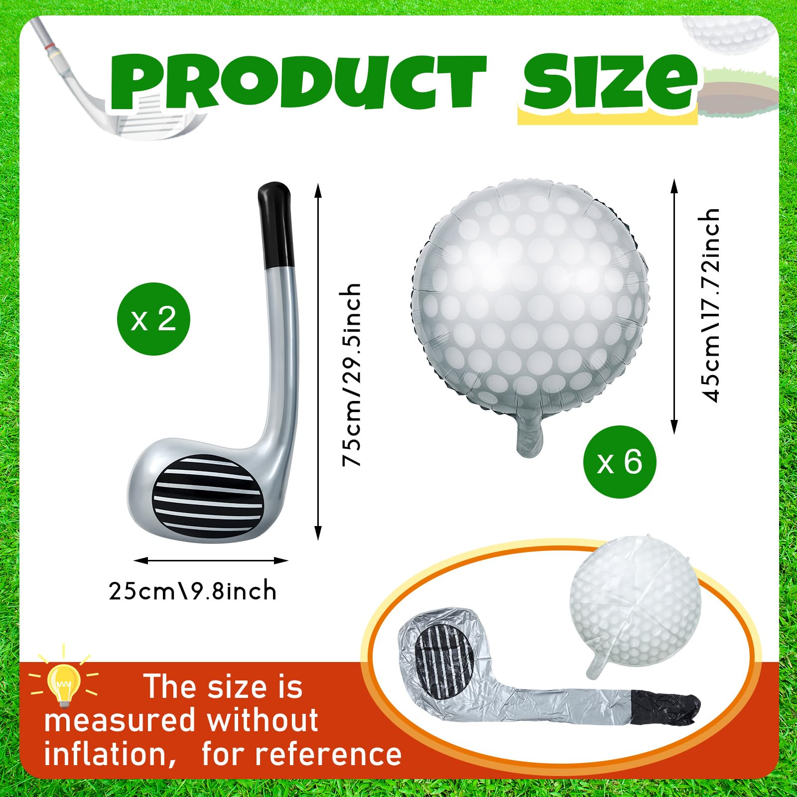 Golf Party Decorations: includes 6 pcs of 18 inches golf ball balloons and 2 pcs of golf club balloons approx. 31.5 x 9.84 inches/ 80 x 25 cm before inflation, providing ample quantity to meet your golf themed party decoration needs; They represent the golf theme and add a touch of excitement to your celebrations, enhancing the atmosphere and making it more vibrant