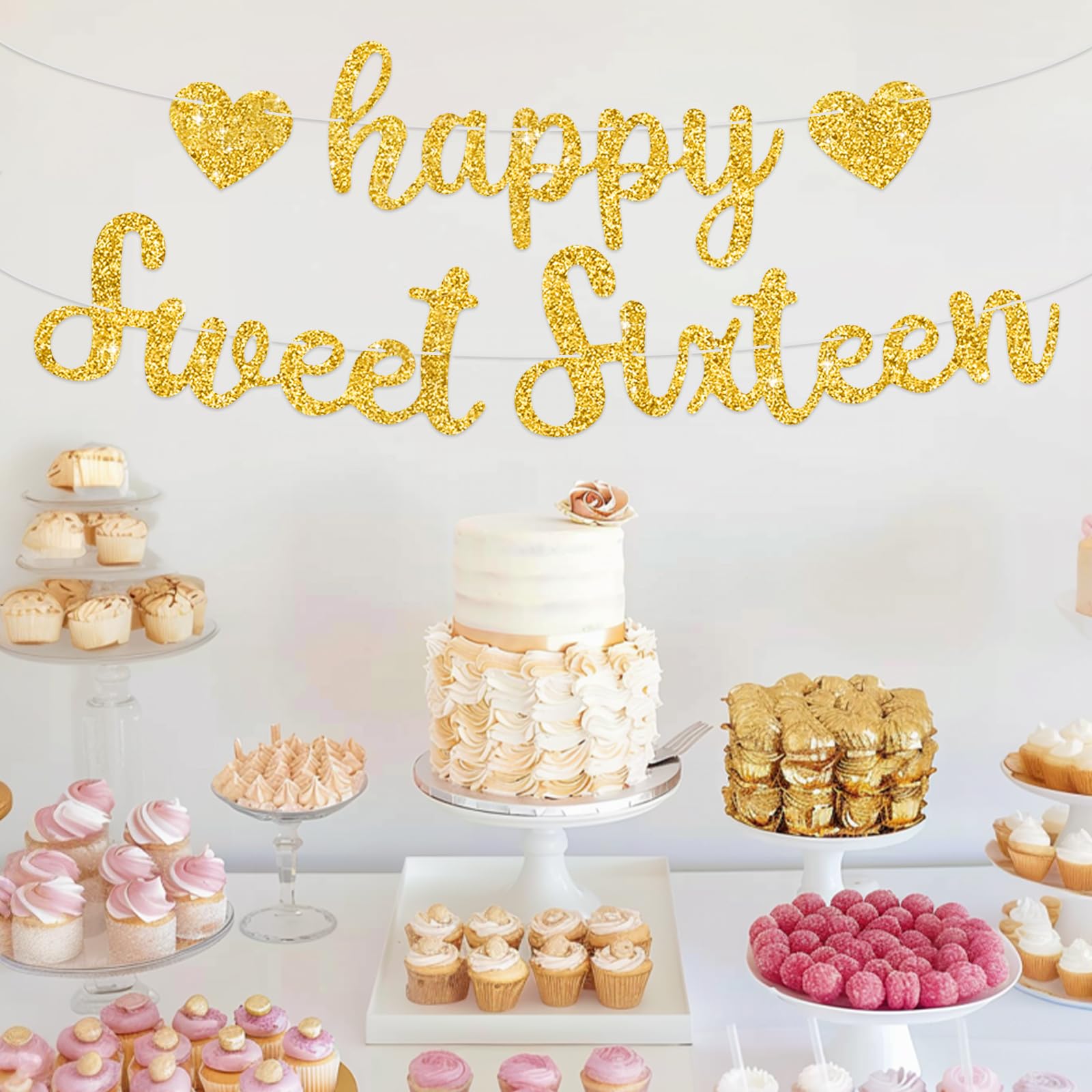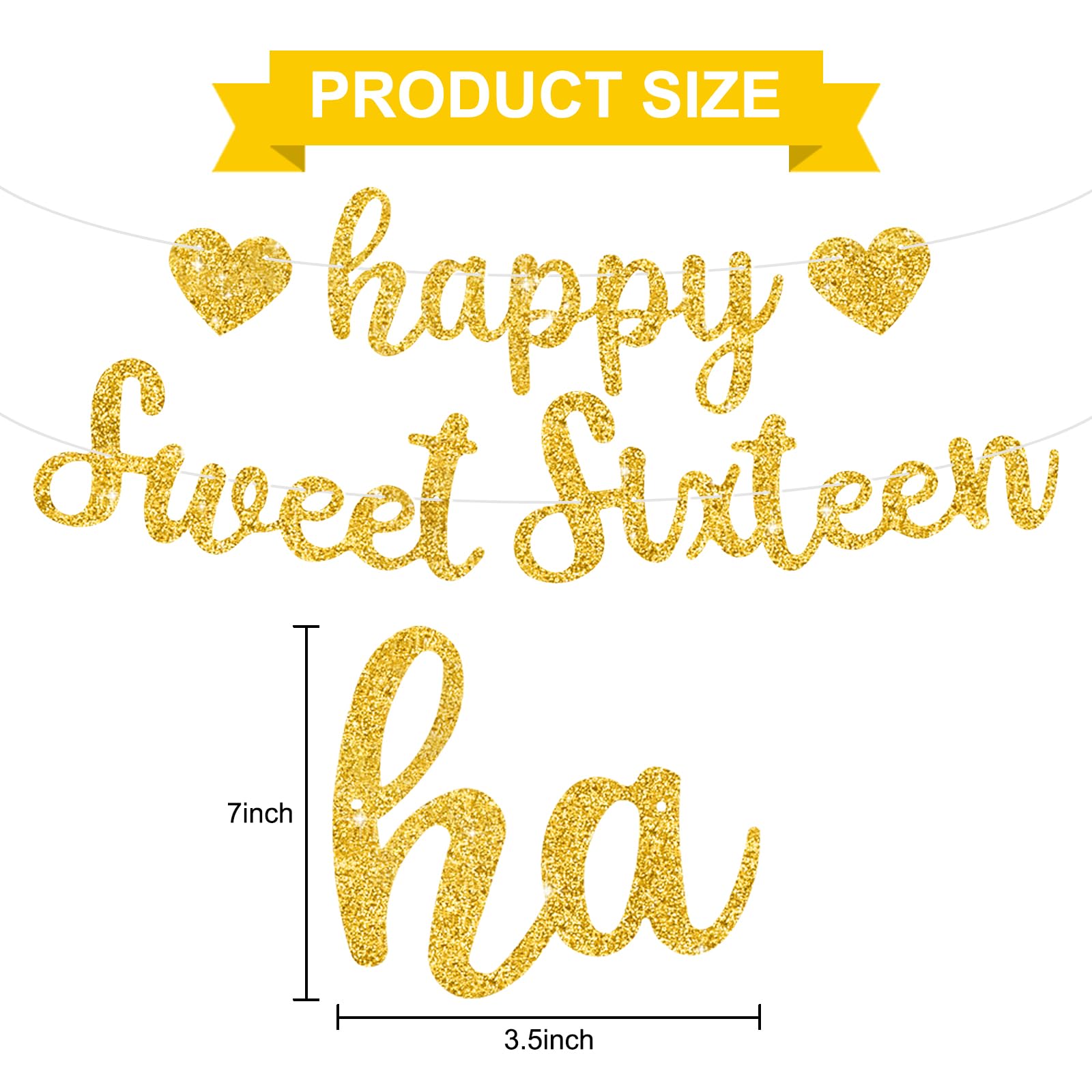 【Product includes】 △ A pink glitter Happy Sweet Sixteen birthday bannerIt is a very convenient birthday banner that can save your time and decorate your birthday very well.【Product design】Special design △ Pink glitter style — giving you a beautiful party △ Beautiful designs — good for birthday party decoration. 【Reliable quality】well made card stock material △ Well-painted — painted with bright and clear colors. △ Reusable —lightweight and easy to store for the next time using. △ Time saving— Our birthday banner is Pre-strung, that means NO DIY required! It is ready to hang, and it is very convenient. 【Great role】 △ Eye catching — This banner is nice for your birthday party, and it will make your birthday party very beautiful. △ Impressive — Our birthday banner helps announce big moments and make unforgettable memories for your birthday party.