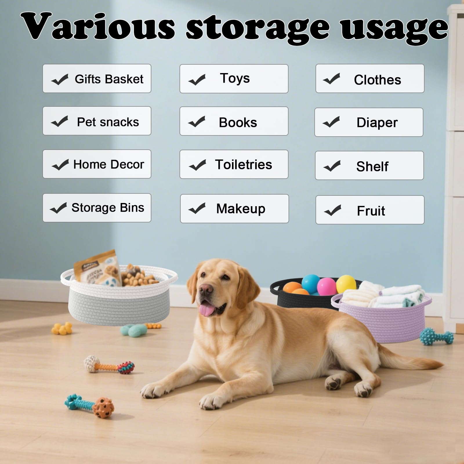 【Multi-Purpose Storage】Woven baskets for storage,bathroom organization, shelf styling,storage basket for organizing snacks, dog cat, magazine, shoes, remotes, books, towels, toiletries, keys and more.Widely used in living room,bedrooms,bathrooms,kids room,and Kitchen