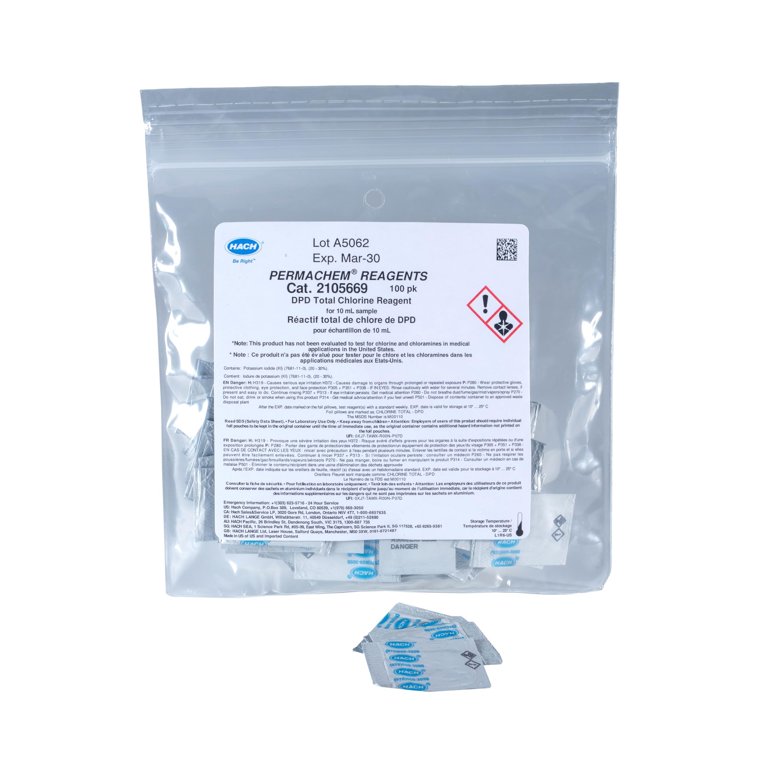 Hach 2105669 DPD Total Chlorine Reagent Powder Pillows, 10 mL, (Pack of 100)