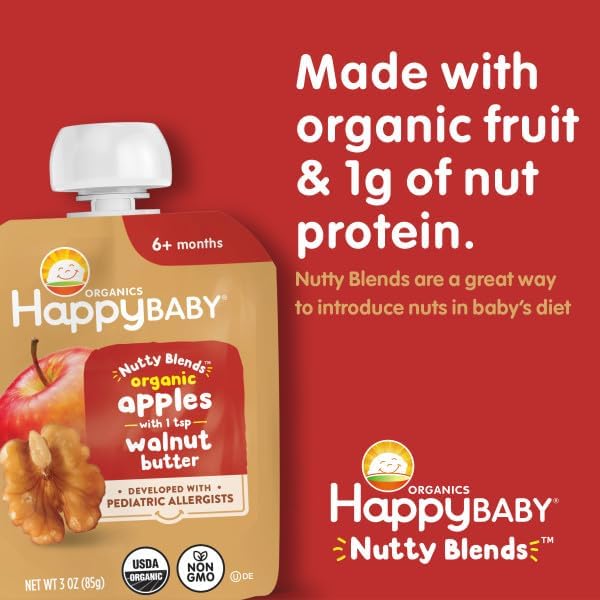 Nutty Blends: Developed with pediatric allergists, our Nutty Blends pouches include familiar fruits and 1g peanut or tree nut protein, in a conveniently portioned puree *Always consult your pediatrician before introducing allergens to your baby