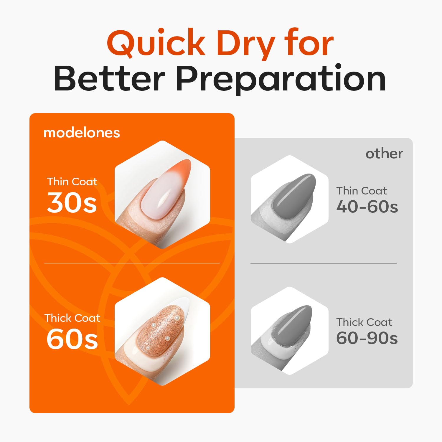Fast Drying Formula: Dries quickly for efficient and easy application (The thin layer dries in 30 seconds). Making it perfect for busy nail artists or beginners