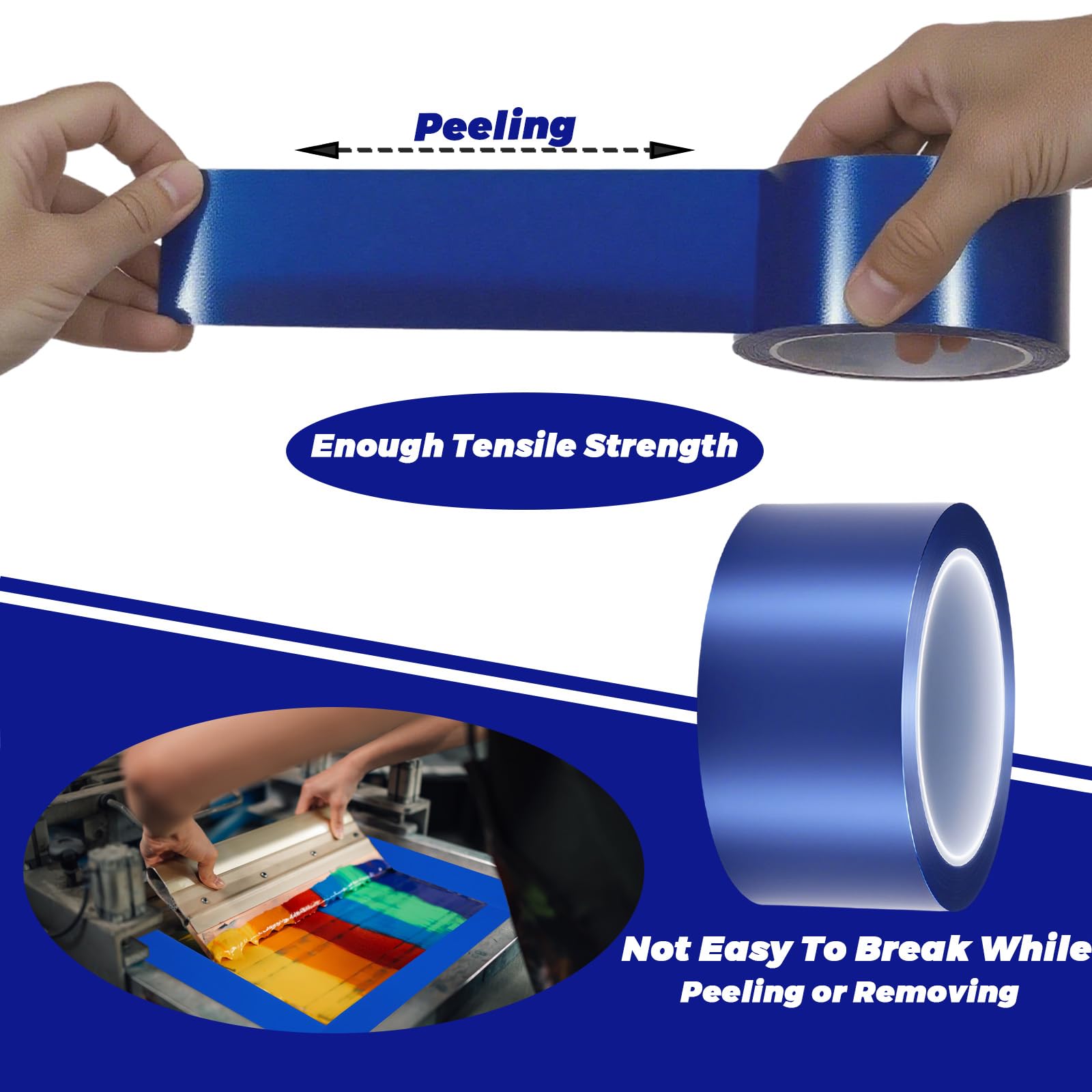 Efficient Pre-Print Protection: Our blue block out tape is designed for pre-print preparation. By taping the corners of the mesh, it prevents ink from seeping between the frame and the mesh, improving printing accuracy and making screen cleaning faster and easier. Extend Screen Life: Screen printing tape effectively protects the print surface, slowing down wear and damage. For optimal protection, apply the blue block out tape to both sides of the screen to extend its lifespan and maintain printing quality. Specifications Size: 2 Inch x 72 Yard