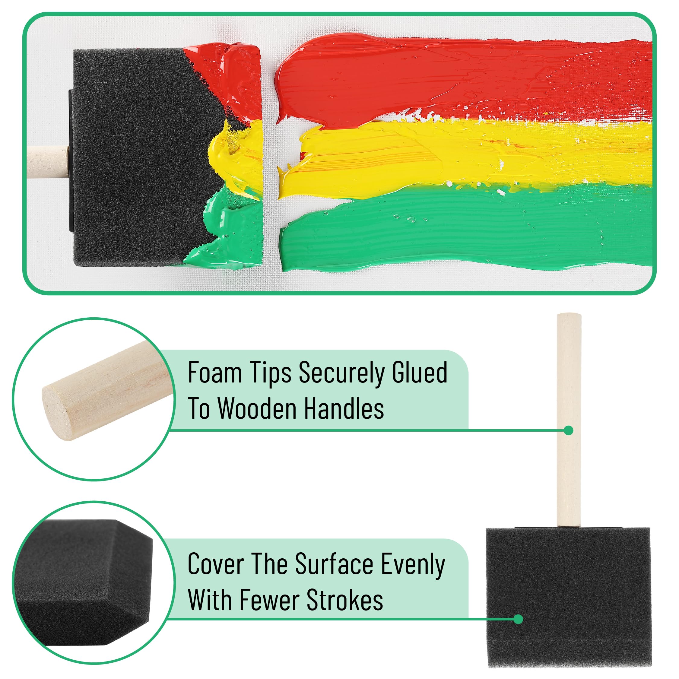 The brushes feature high-quality black foam heads, offering smooth and even application of paint, varnish, or other finishes.