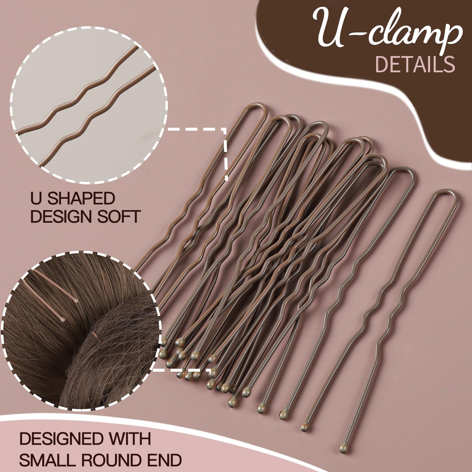 U Shaped Hair Pins: The hair bun pins are made of good quality metal and not easy to break with light brown color and no easy to fade after using a long time. Designed with small ball ends which can prevent from hurting your hair and scratching the scalp. Useful tools to hold your hair in place and avoid falling down.