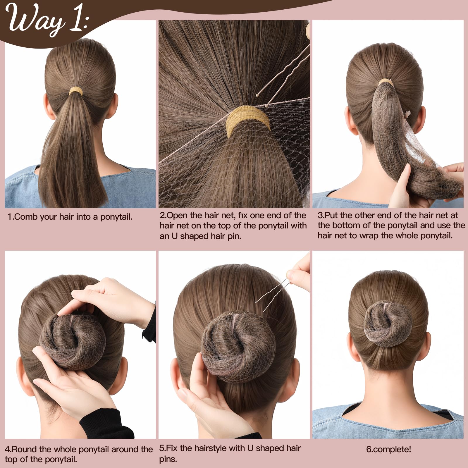 Package Included: Comes with 20pcs tan brown invisible hair nets and 40pcs light brown U shaped hair pins. Size: Invisible hair net: 20 inch(50cm). Hair pins: 2.4inch(6cm). The size is suitable for most people’s head and hair.