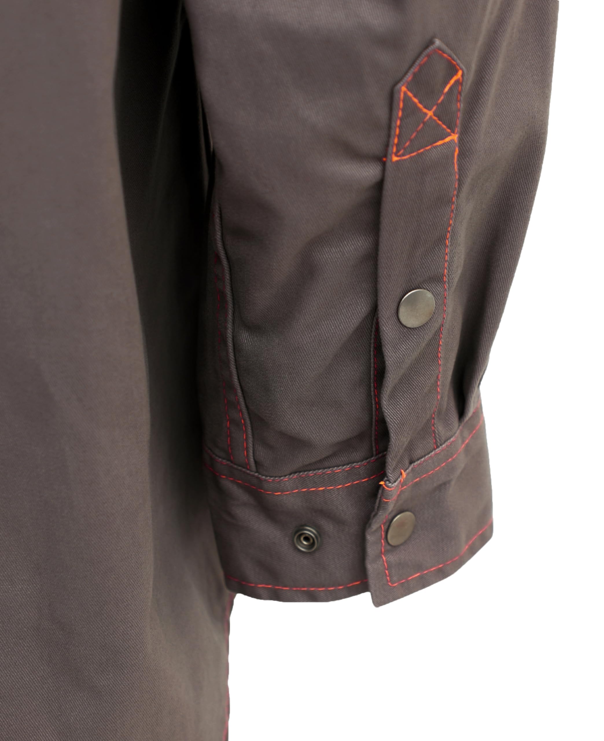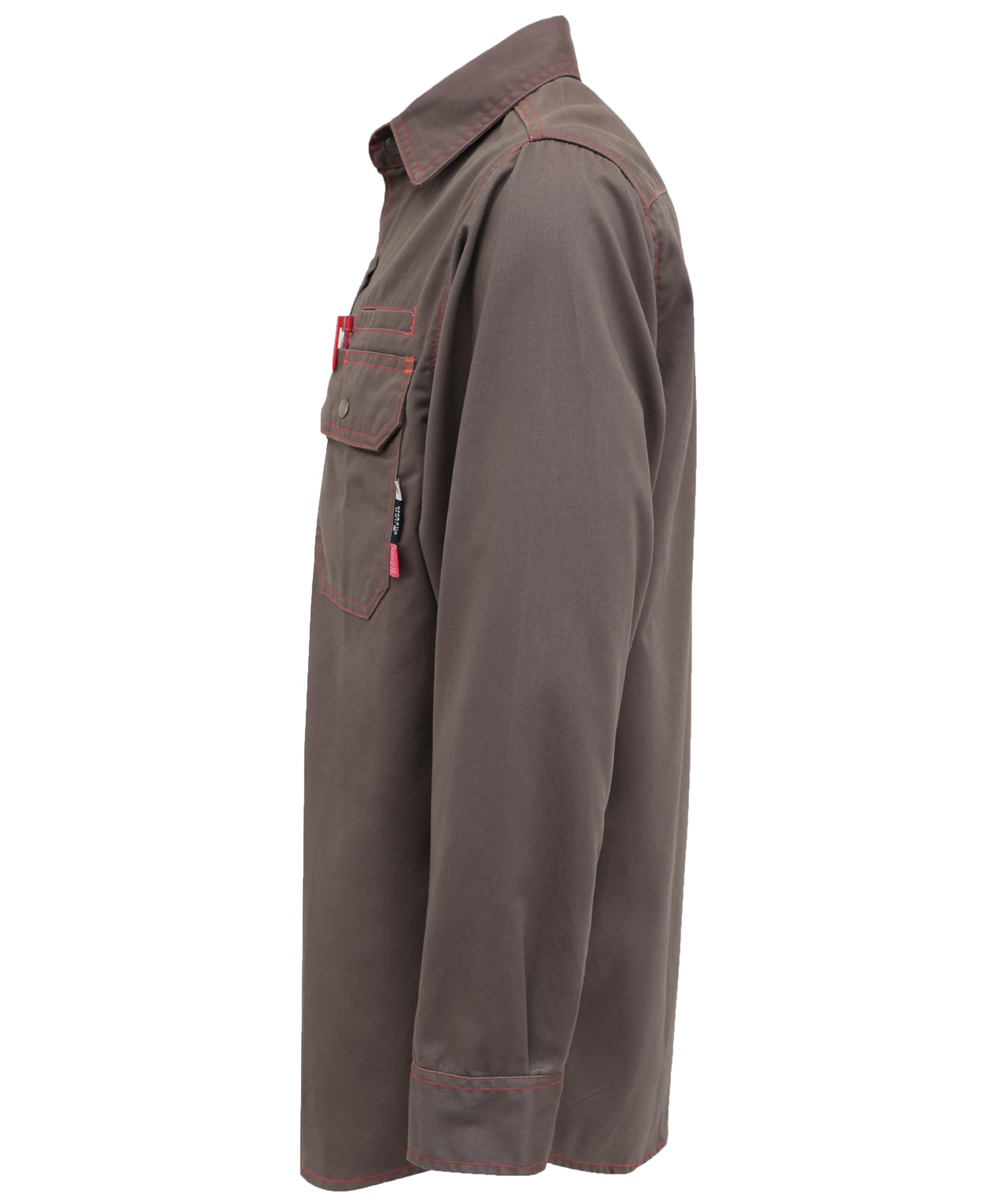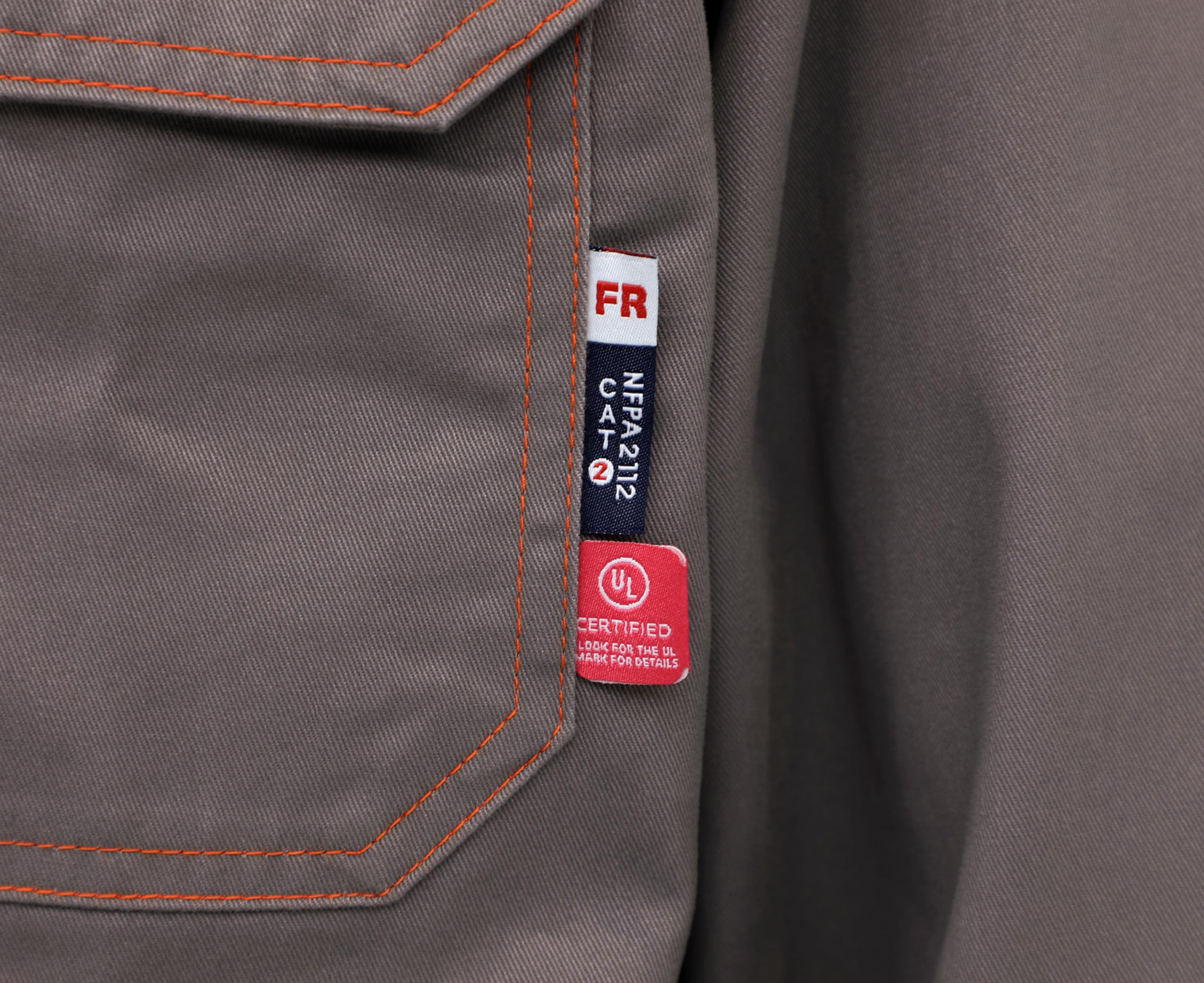 FR MATRIALS:7.5oz 100% cotton twill soften brushed.Flame resistant treated,water repellent and stain resistant Finish.FR aramid threads,Eyecatch FR Tag/UL tag on chest pocket.