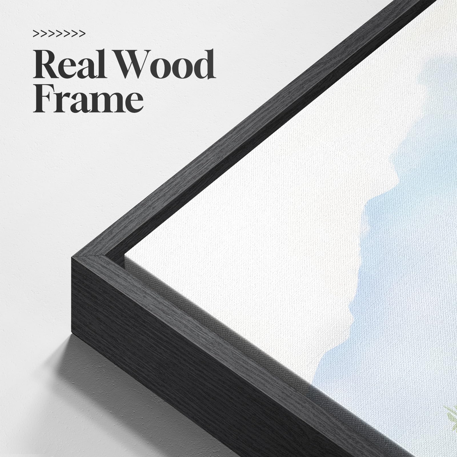 [Premium Canvas and Wood Frame]: Printed on high quality, fade resistant canvas to enhance abstract mountain and forest detail. Dust‑protected and treated to resist fading, so the emerald green stays fresh over time. The sturdy black wood frame adds the landscape wall art a clean look and reliable support for years of hanging